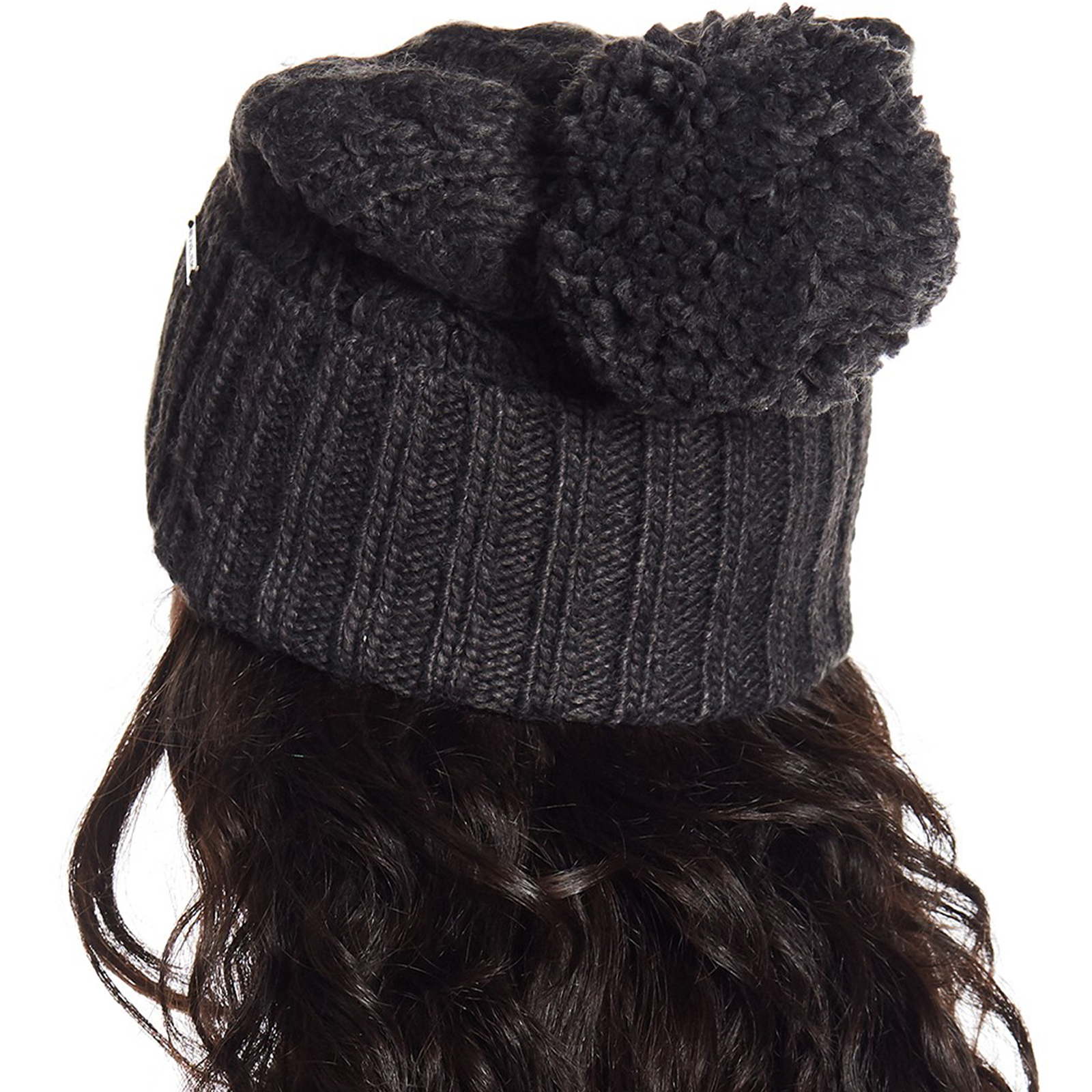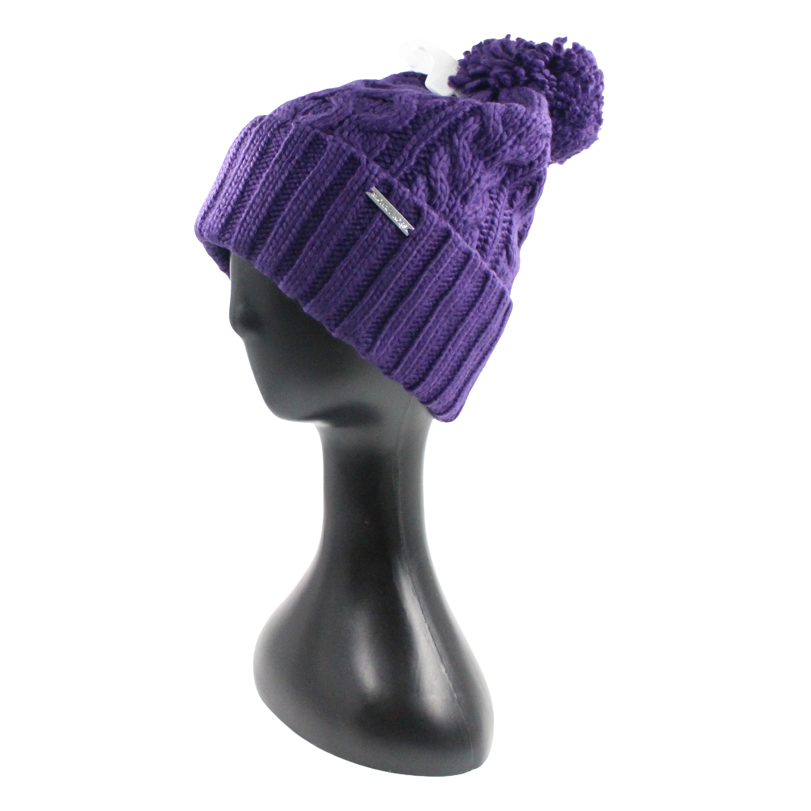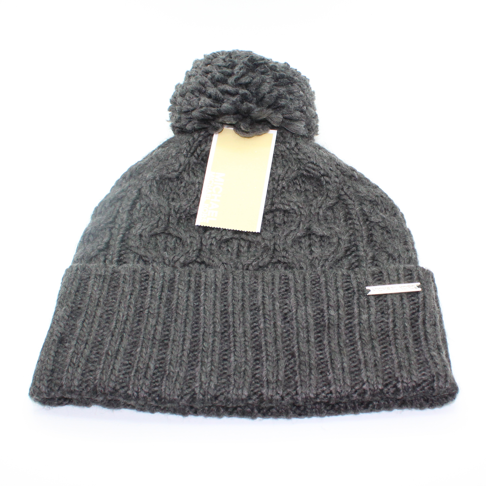 MICHAEL KORS Cable Rib Knit Cuffed Pompom Beanie Hat