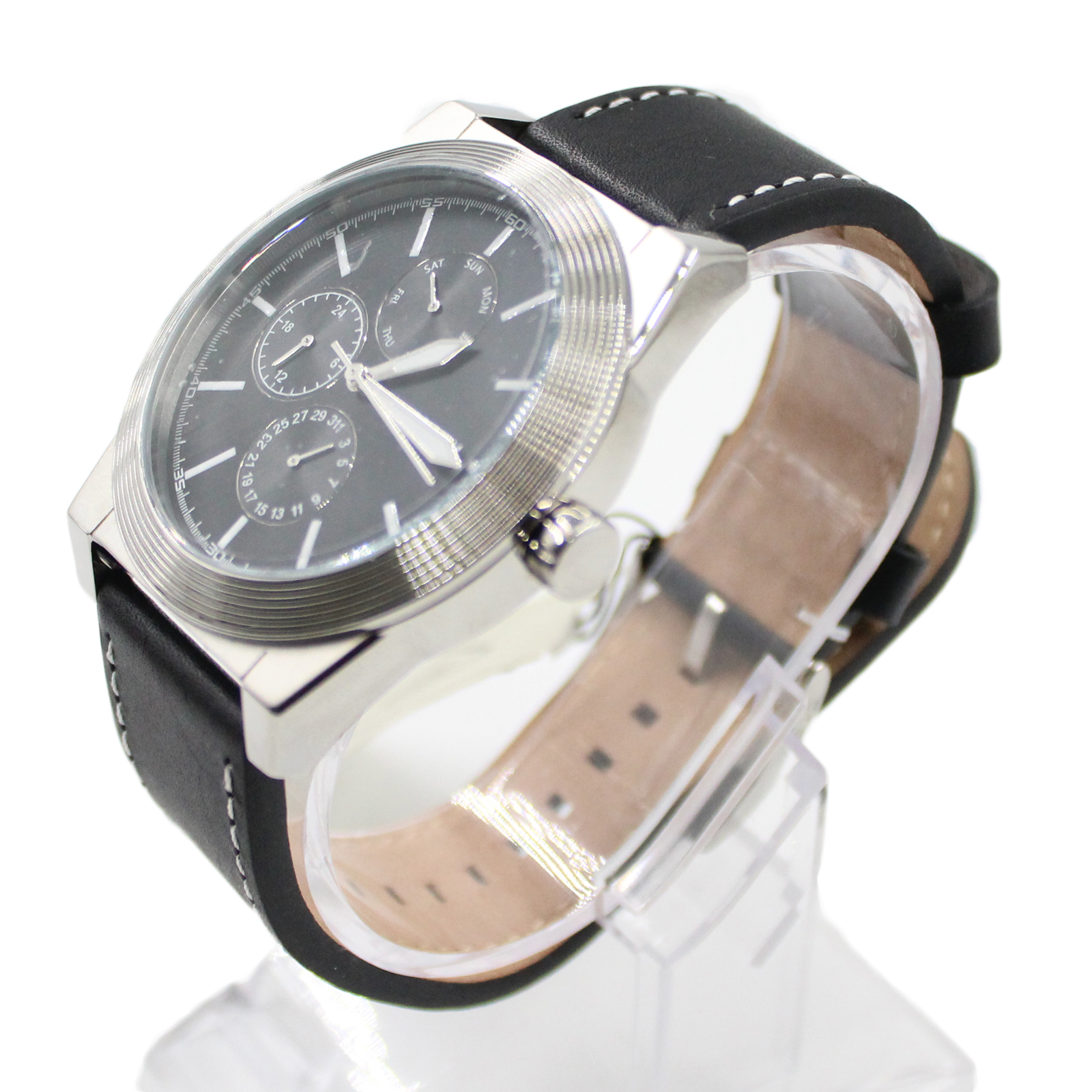 FOSSIL Geoff Multifunction Analog Silver Case Black Leather Watch – BQ2334