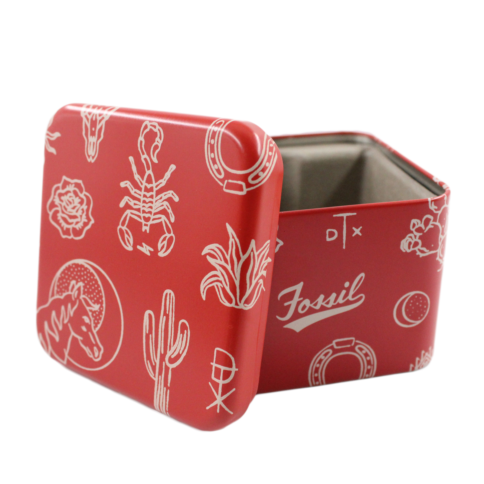 Watch comes with a Fossil tin.