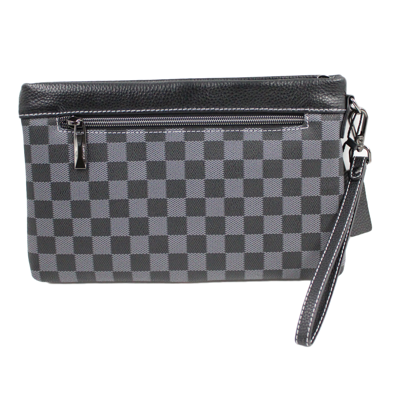 Swicky Canvas Coated Leather Trim Zip Top Checkered Clutch Bag
