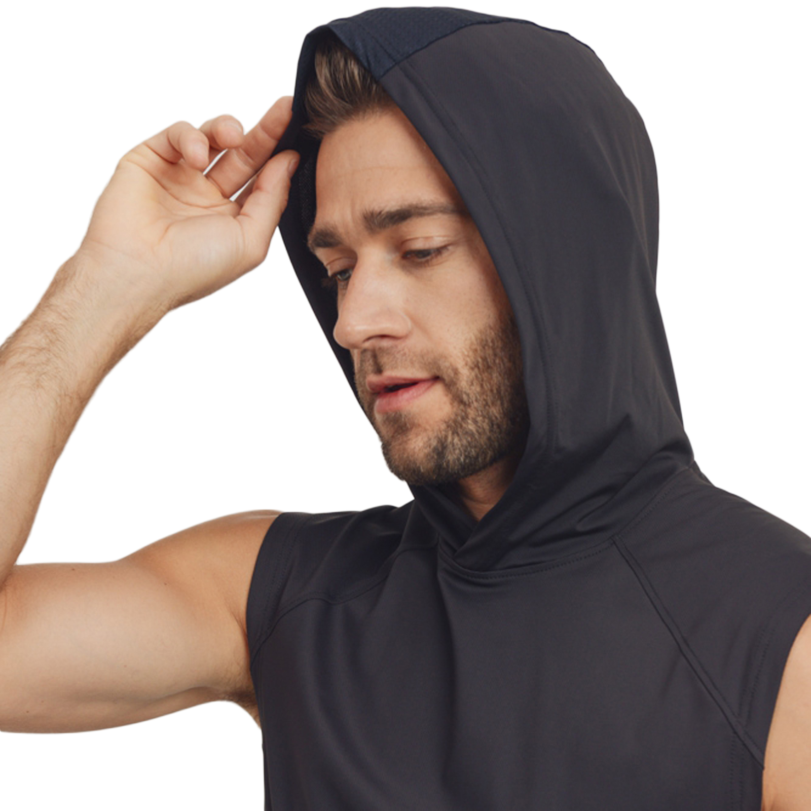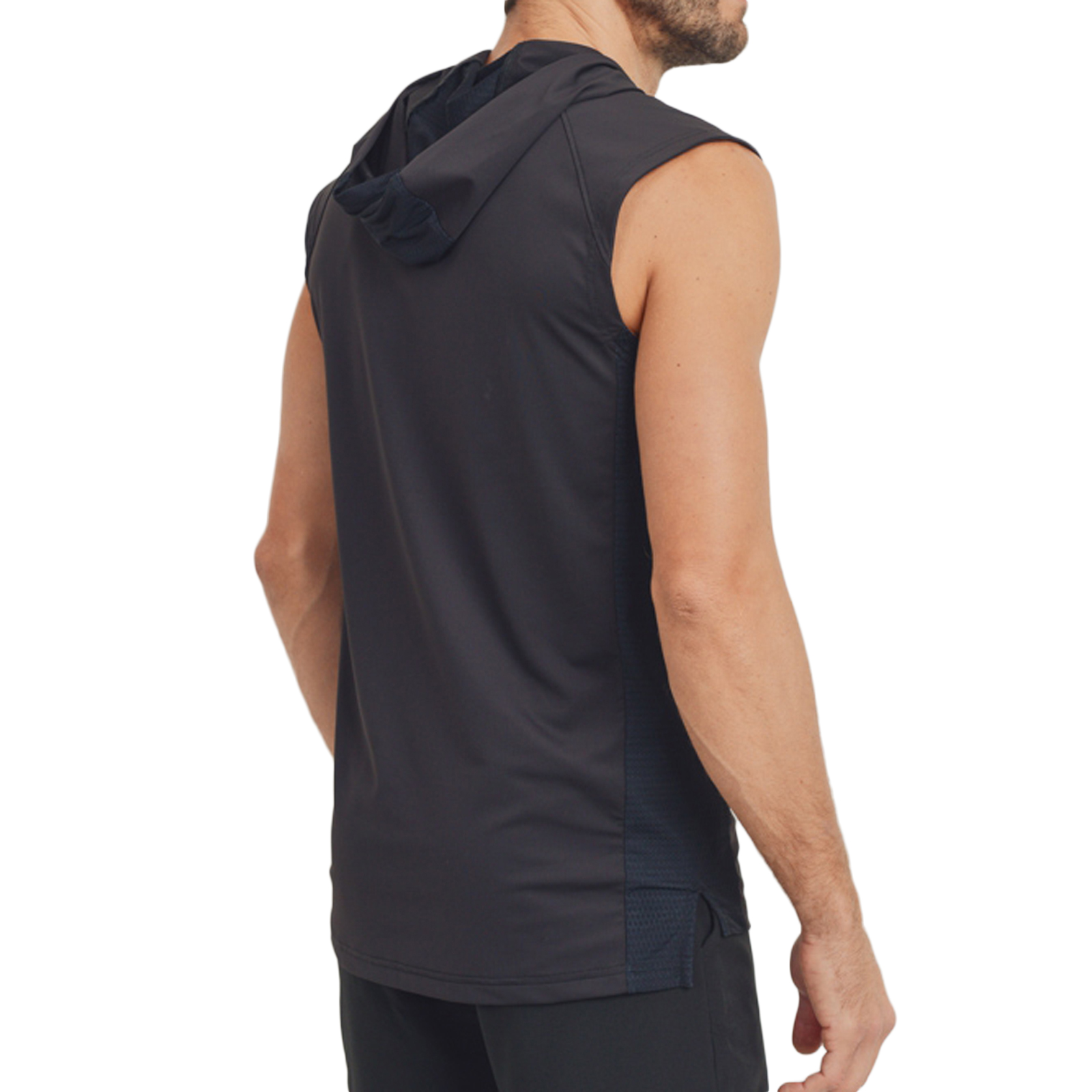 Mono B Hoodie Sleeveless Perforated Sides Hi-Lo Black Muscle Tank