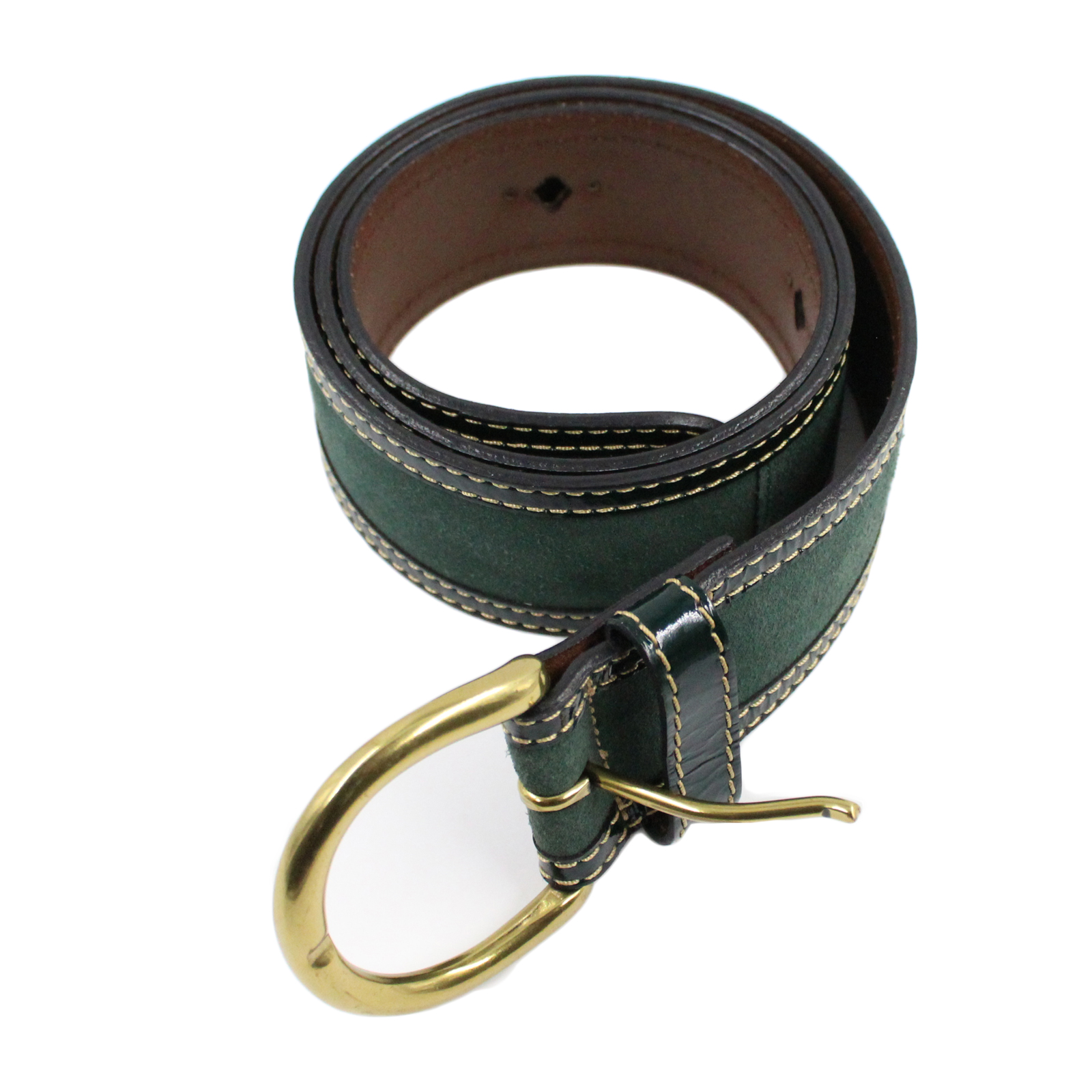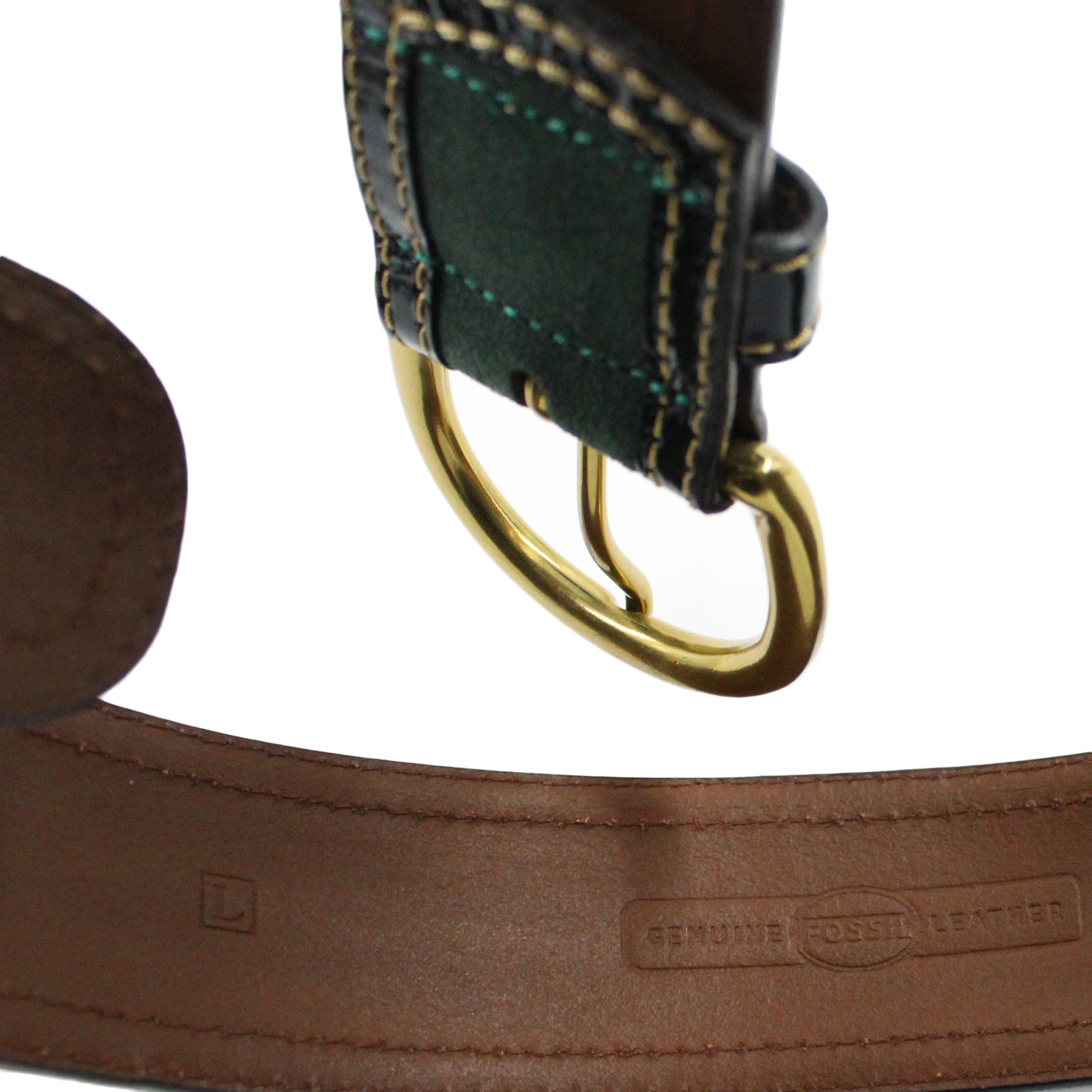 FOSSIL Genuine Suede Patent Leather Gold Buckle Large Green Belt