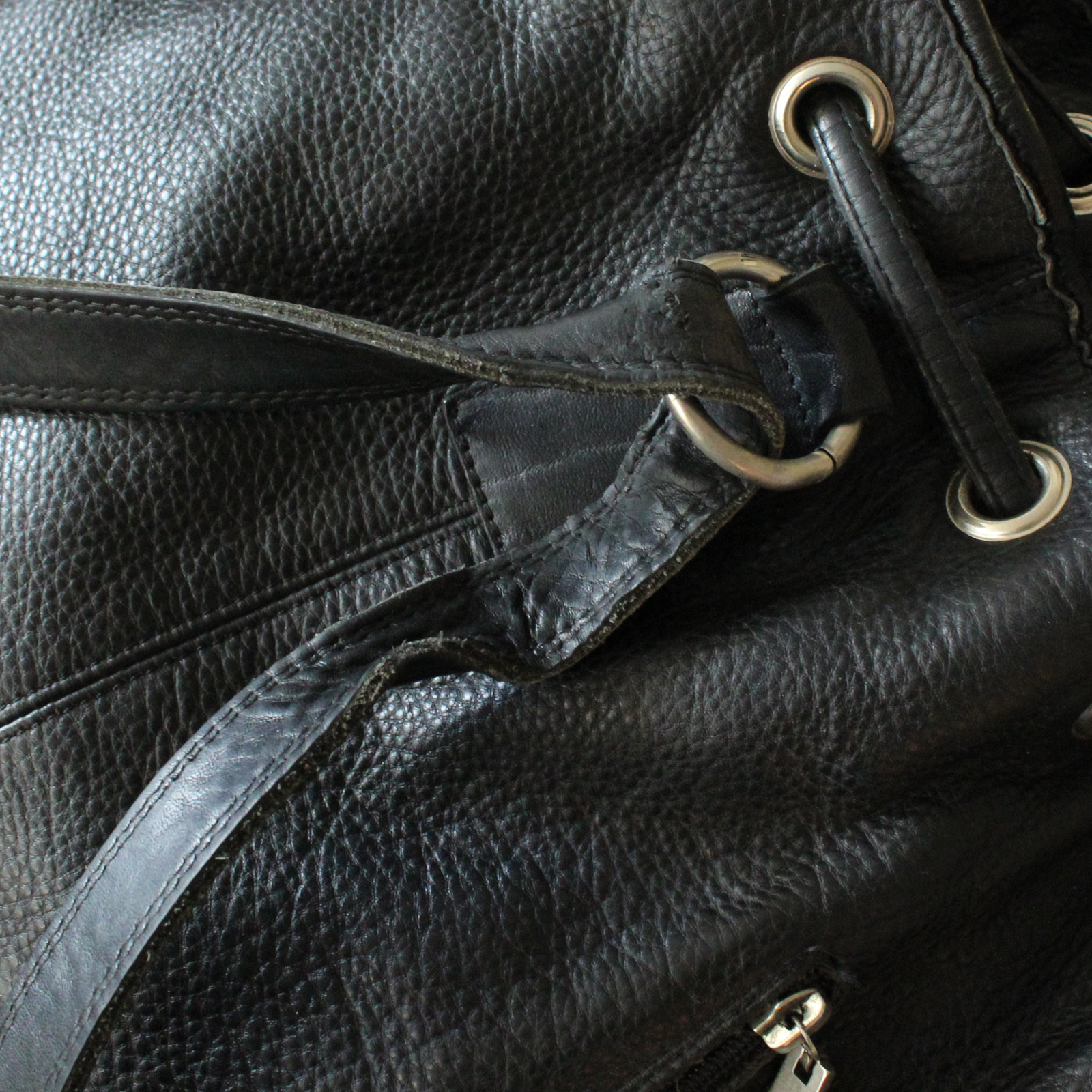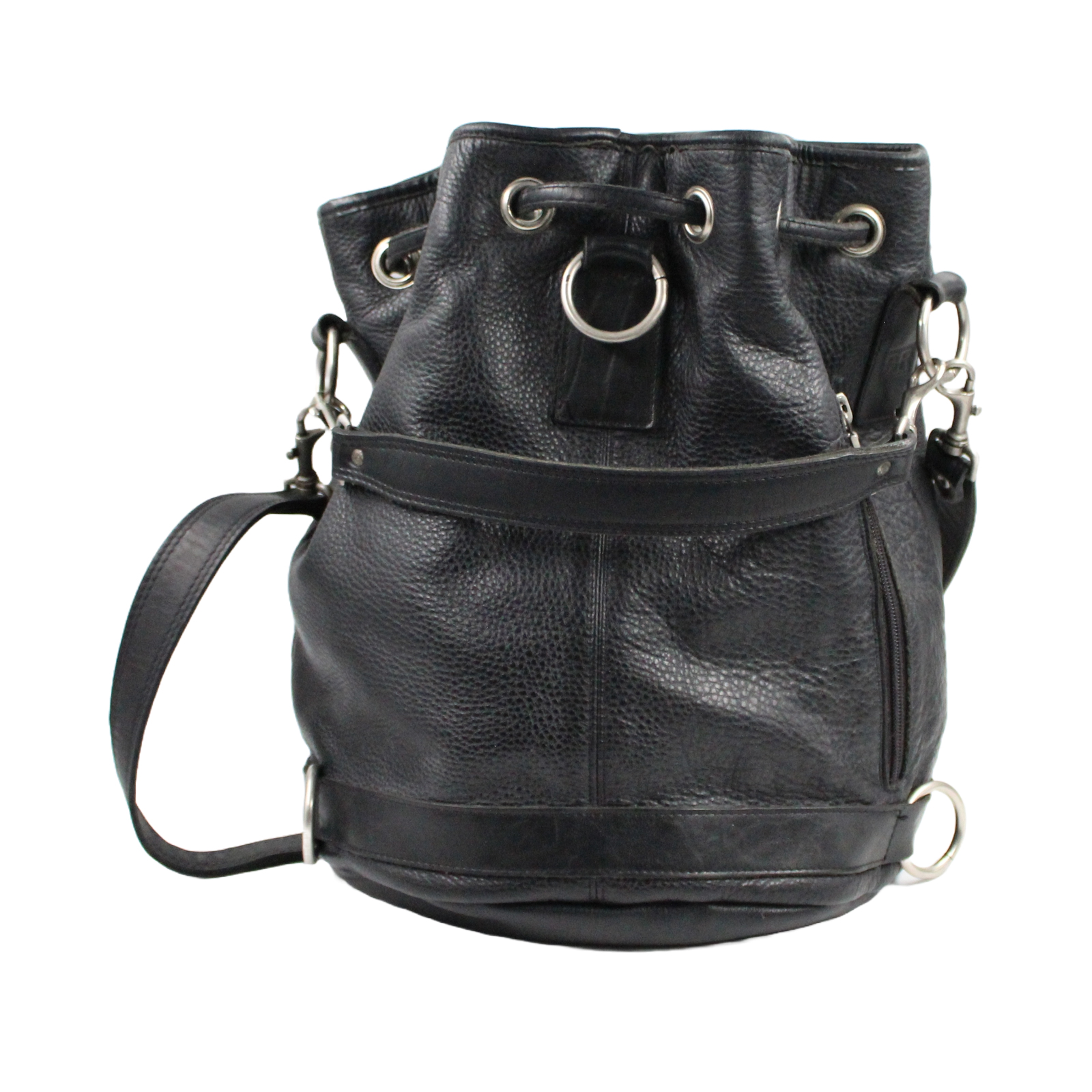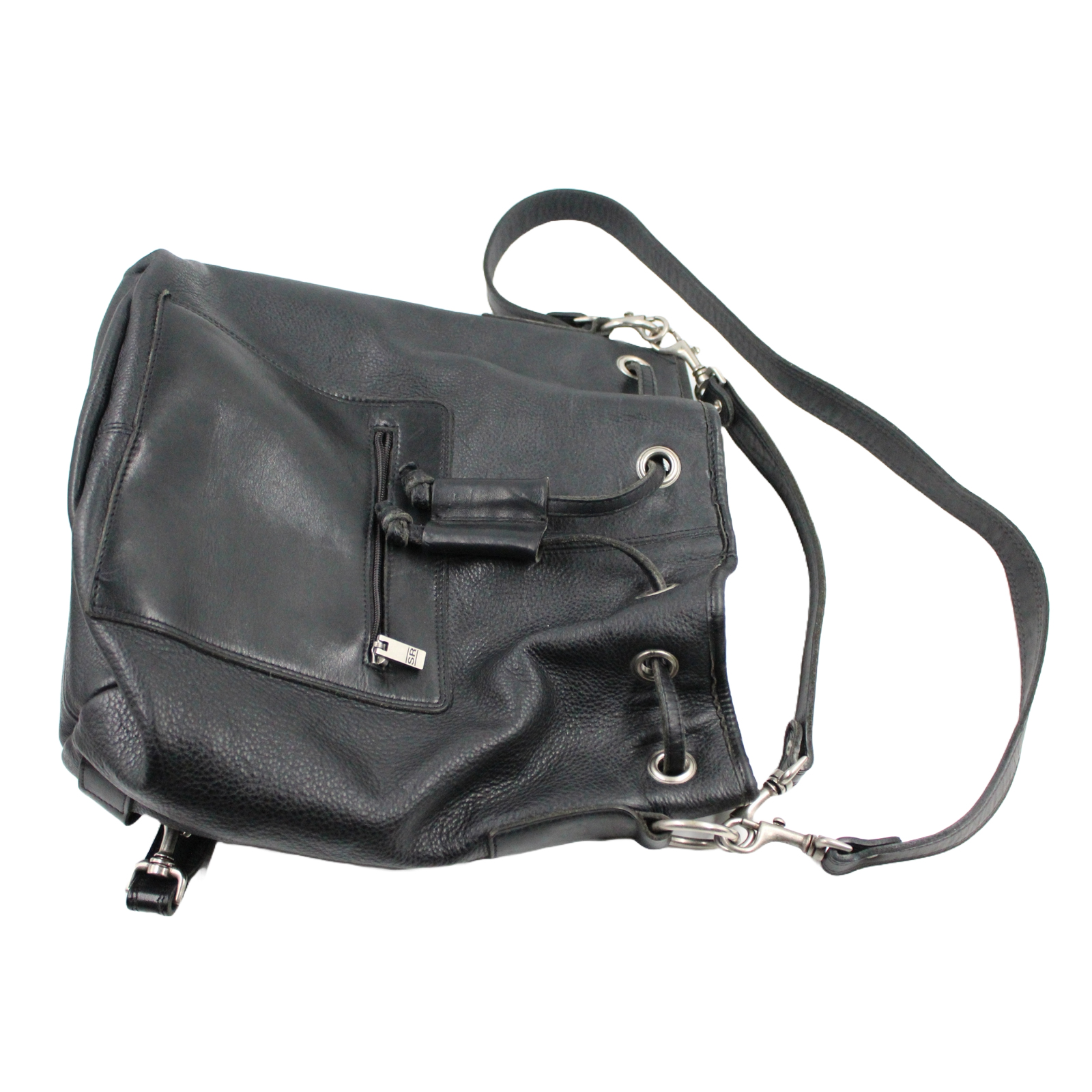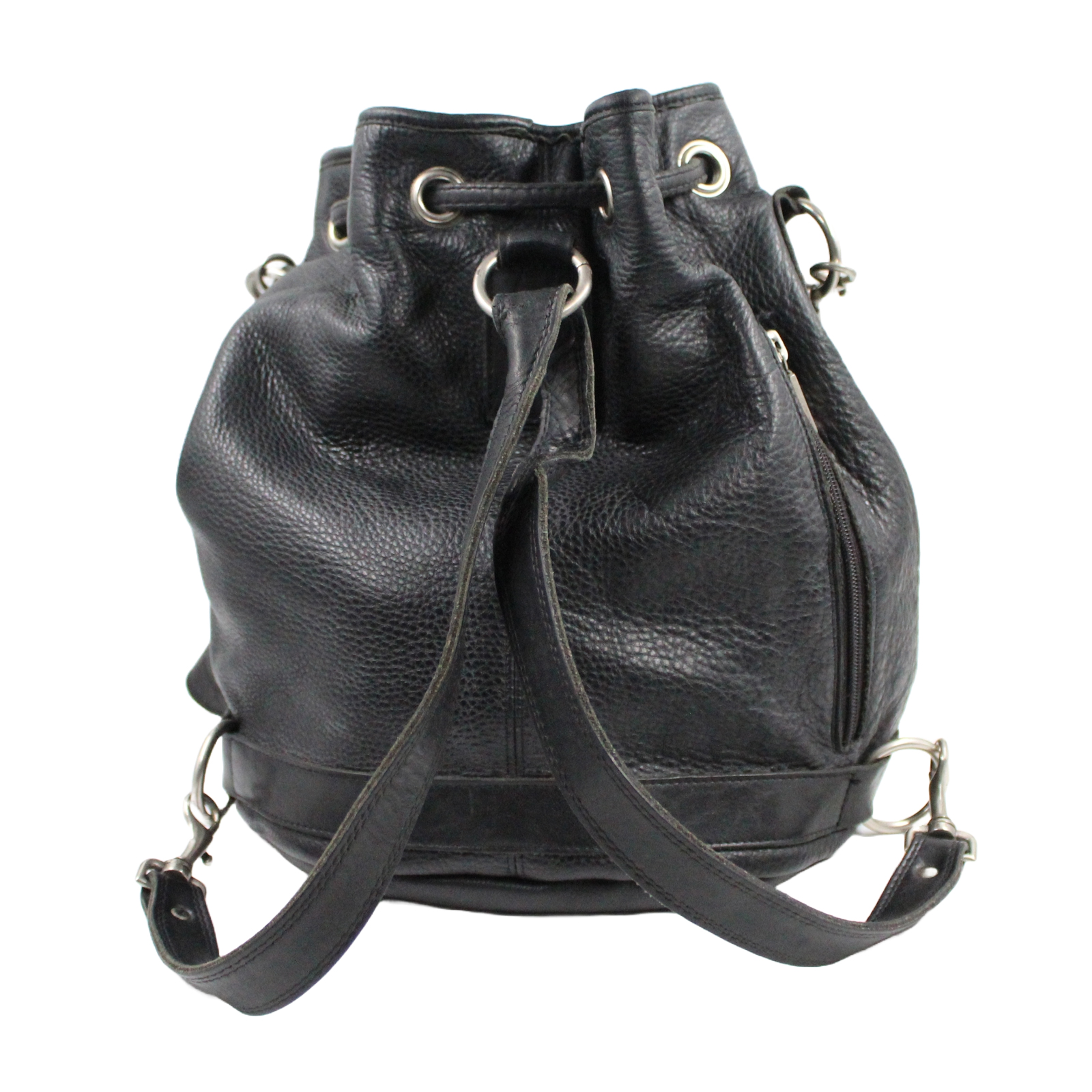 SR Pebbled & Smooth Leather Black Shoulder Backpack Bag