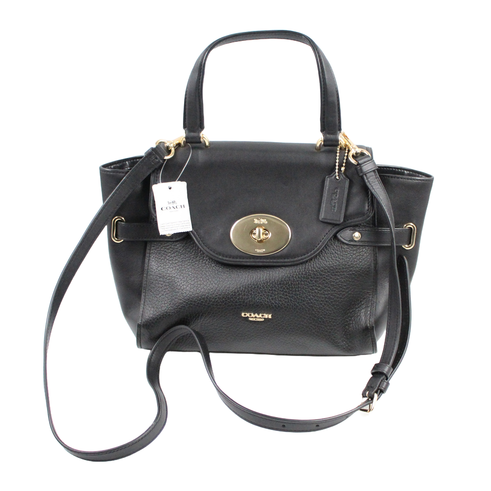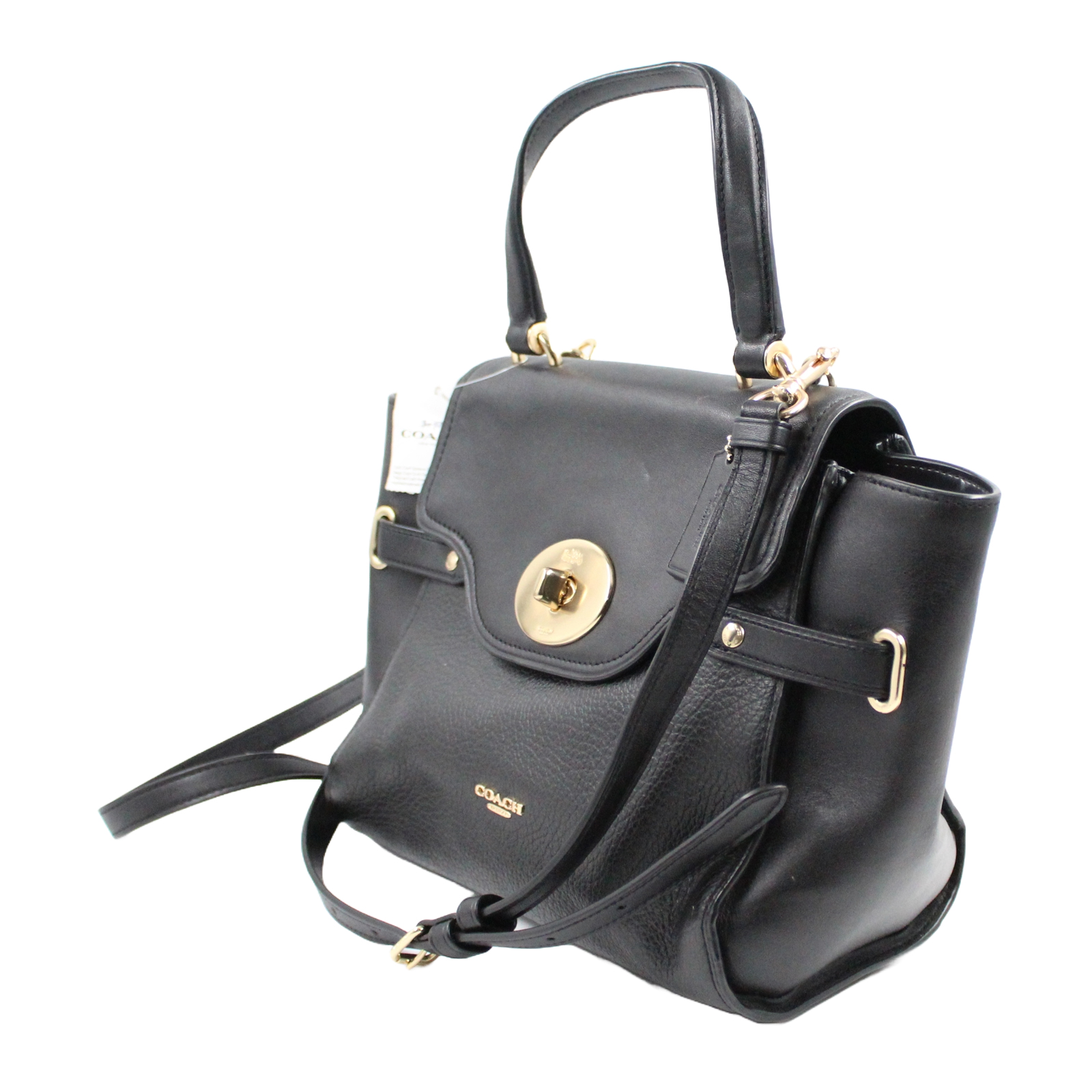 COACH Blake Flap Crossbody Top Handle Twist Lock Black Leather Bag – F32106