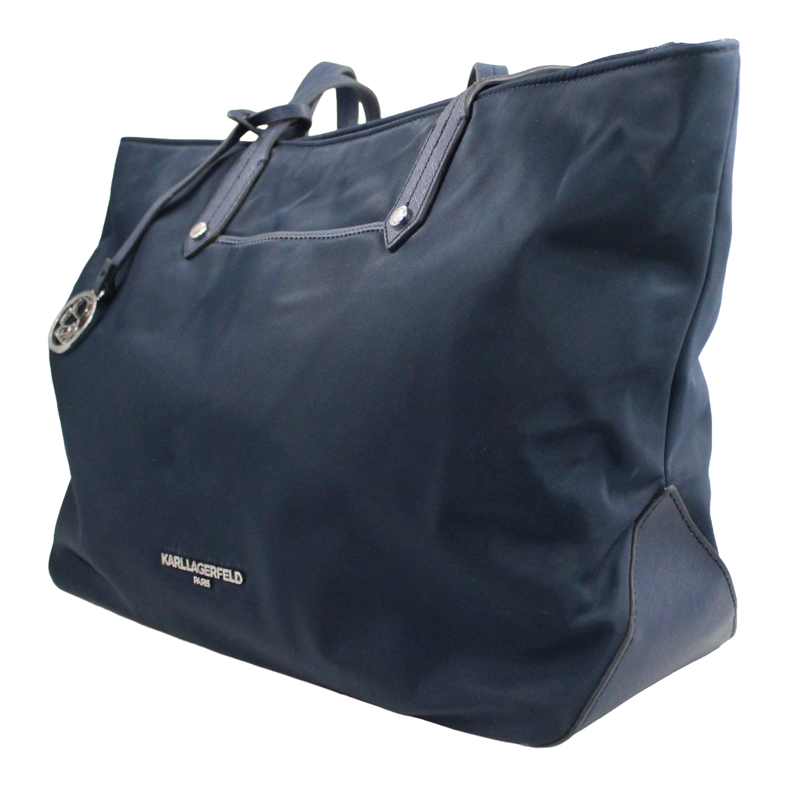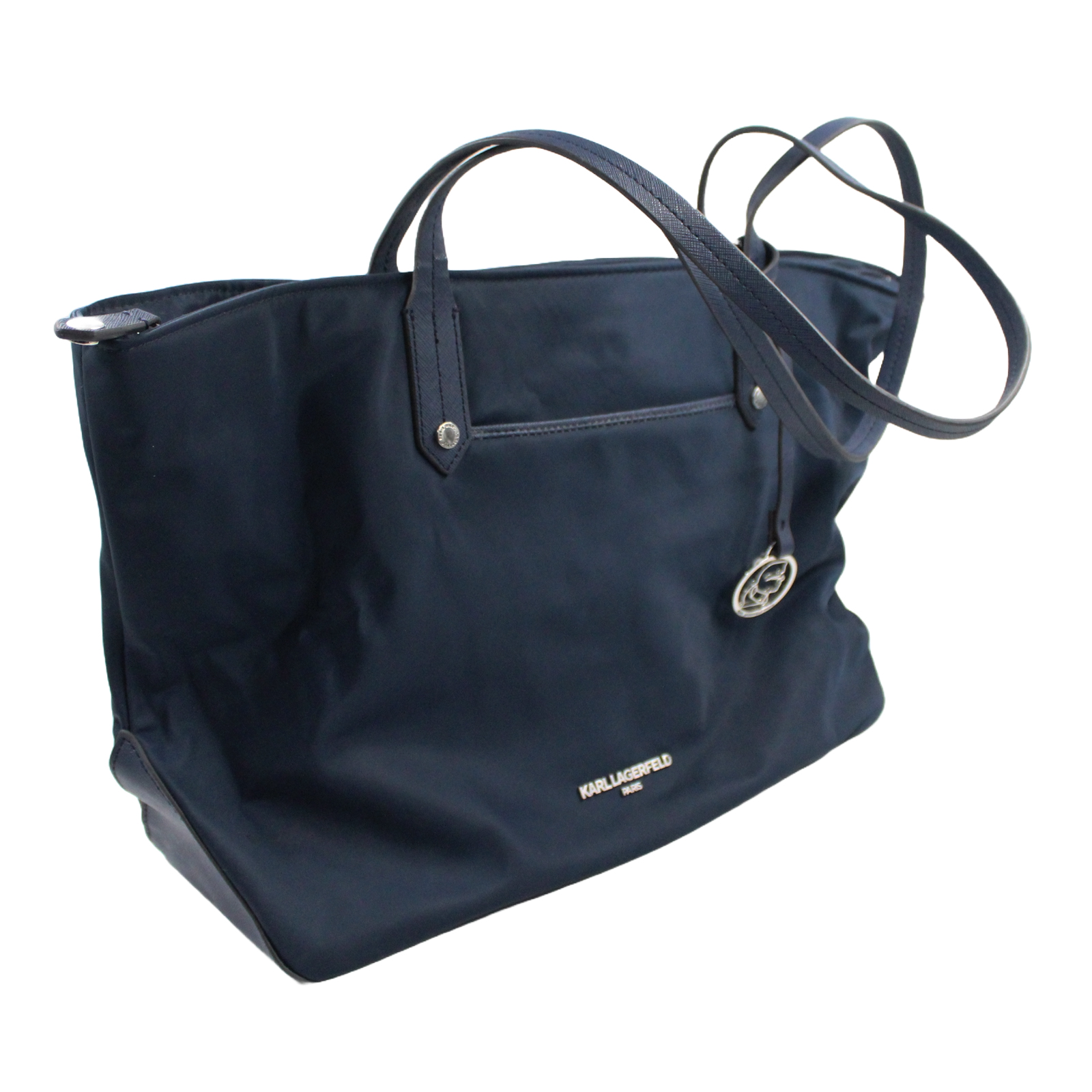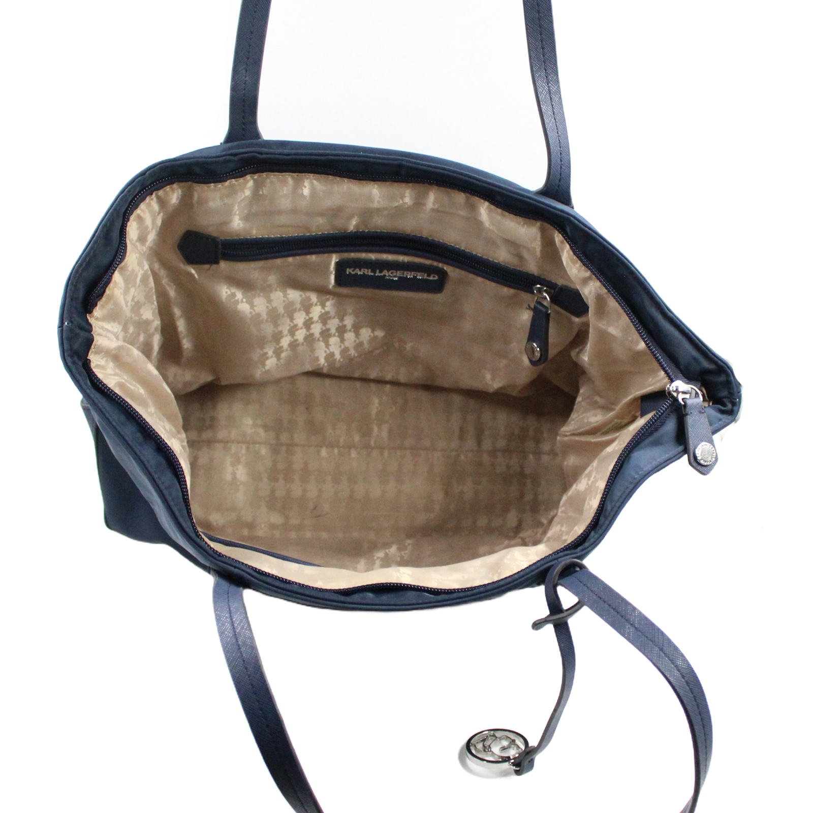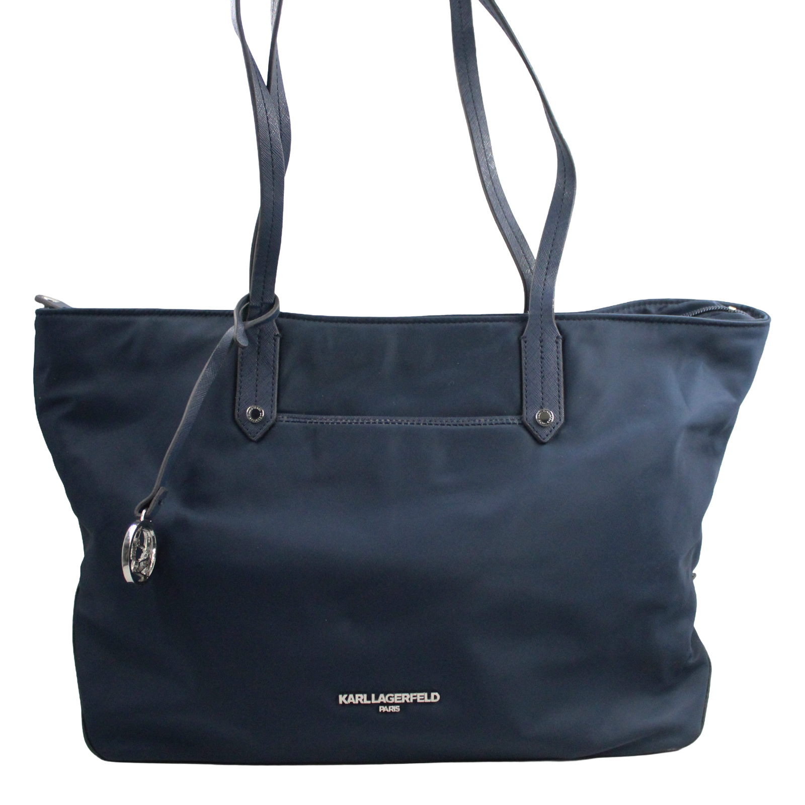 KARL LAGERFELD Nylon Zip Top Navy Blue Shoulder Tote Bag