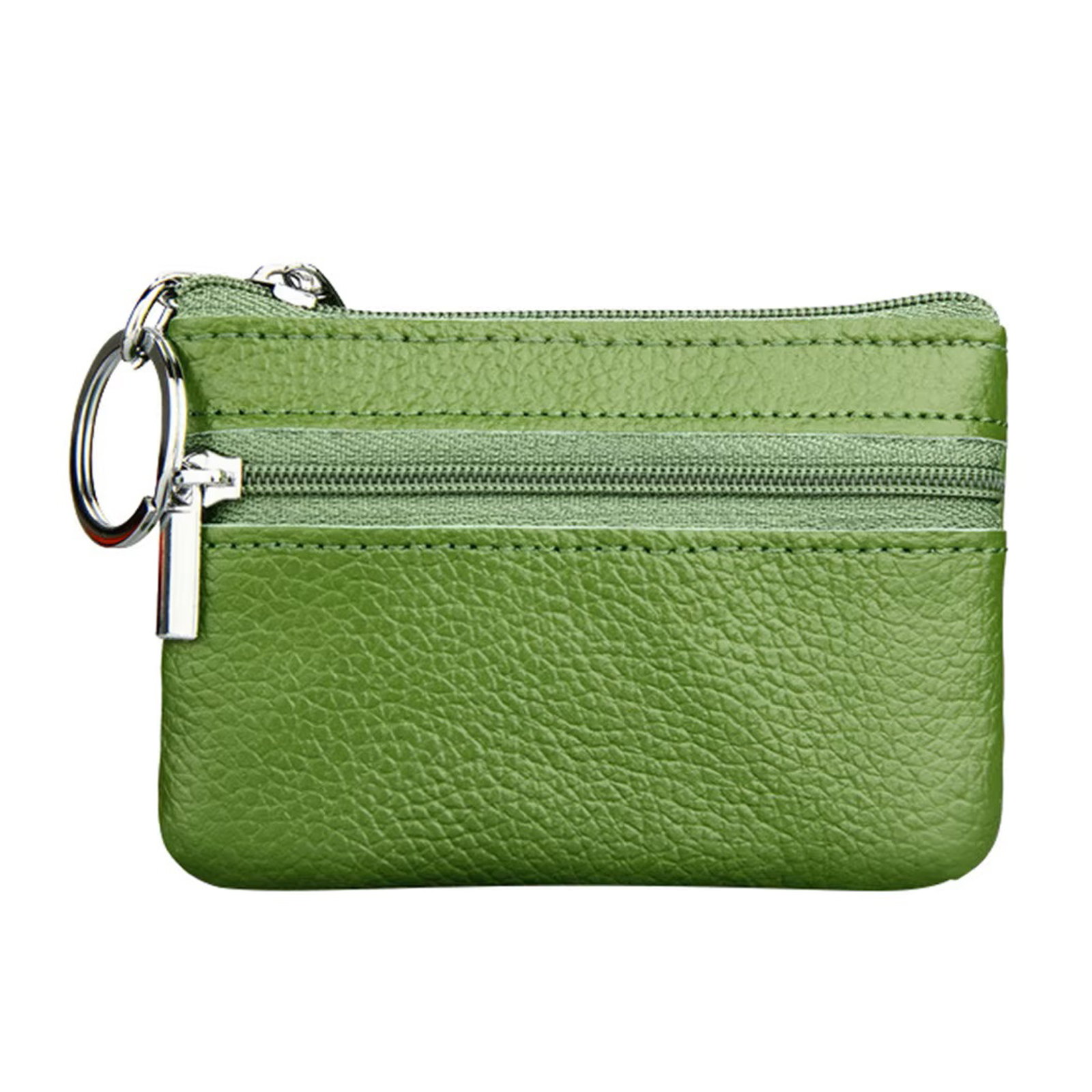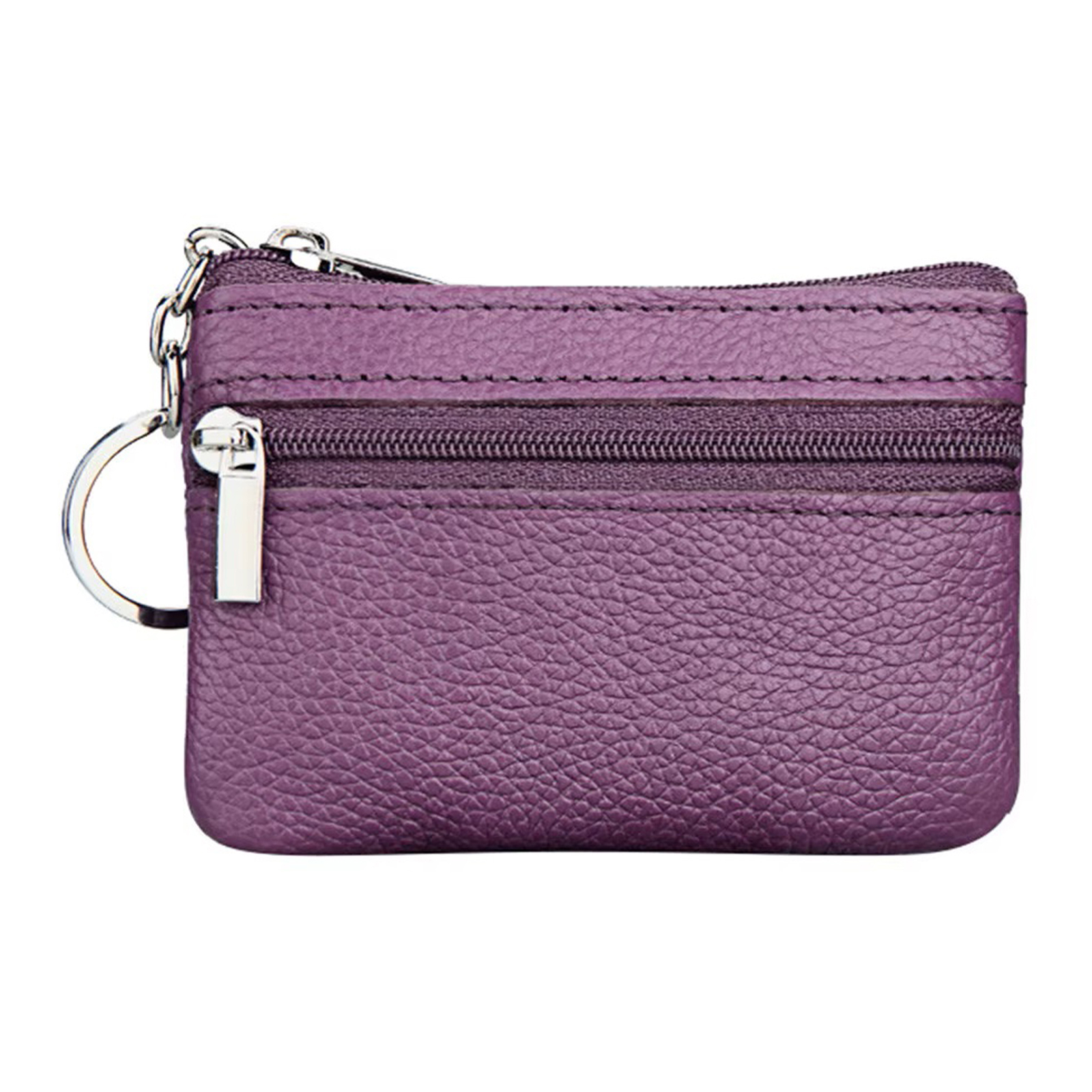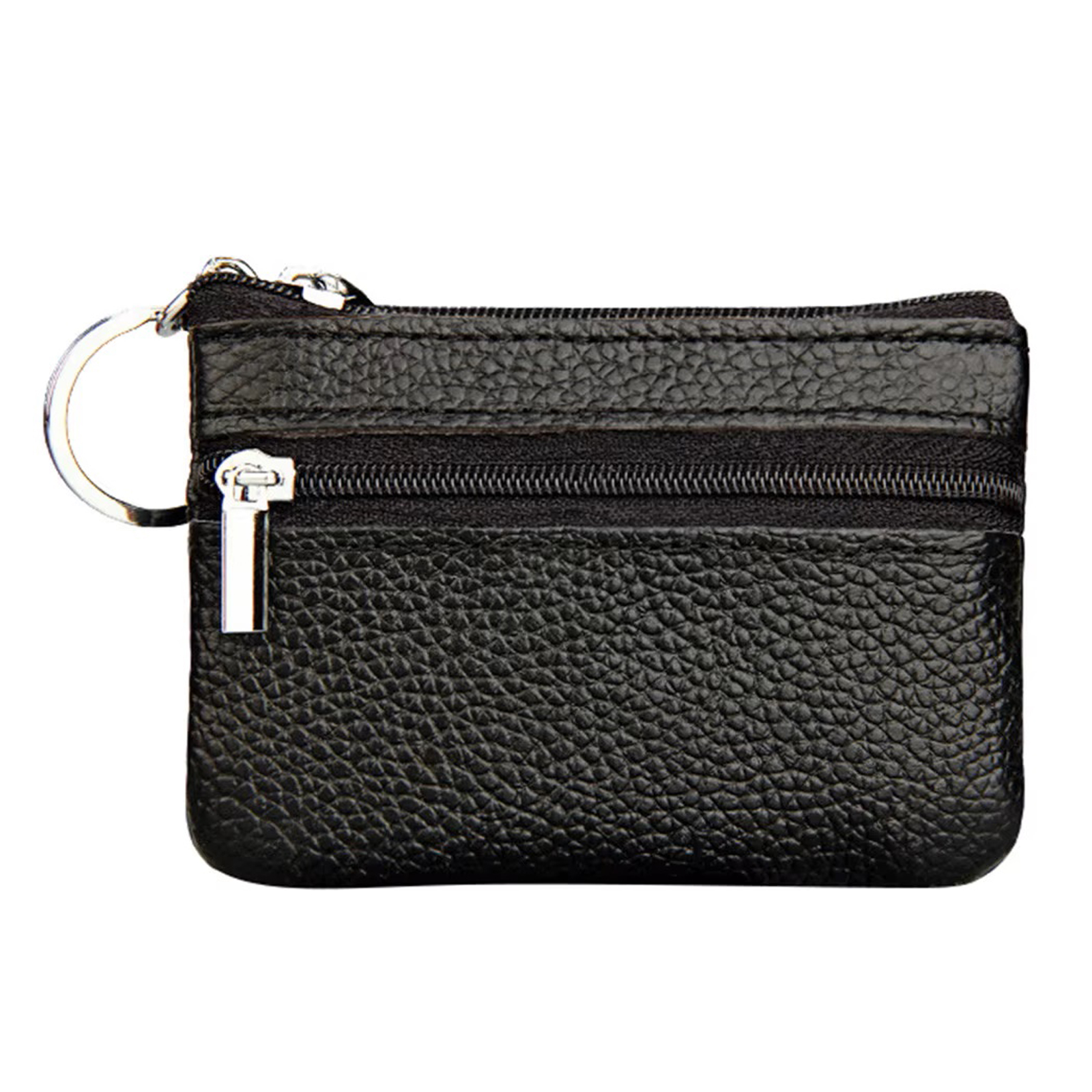 Leather Coin Card Holder Zip Compartments Key Ring Pouch Wallet