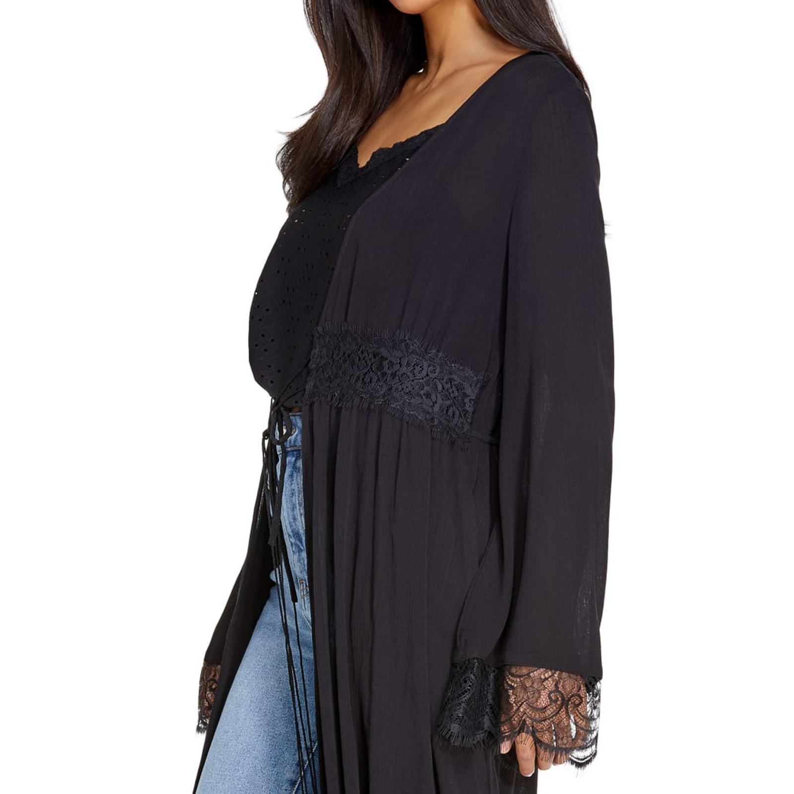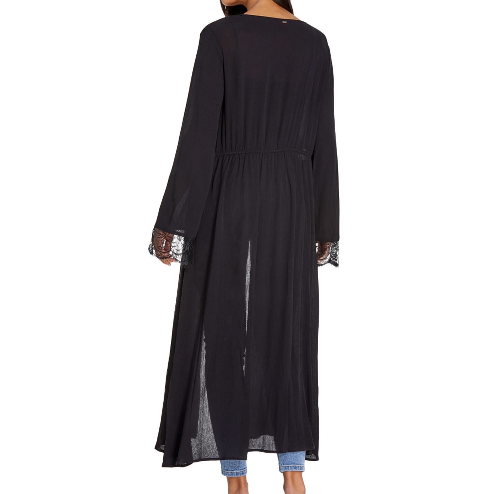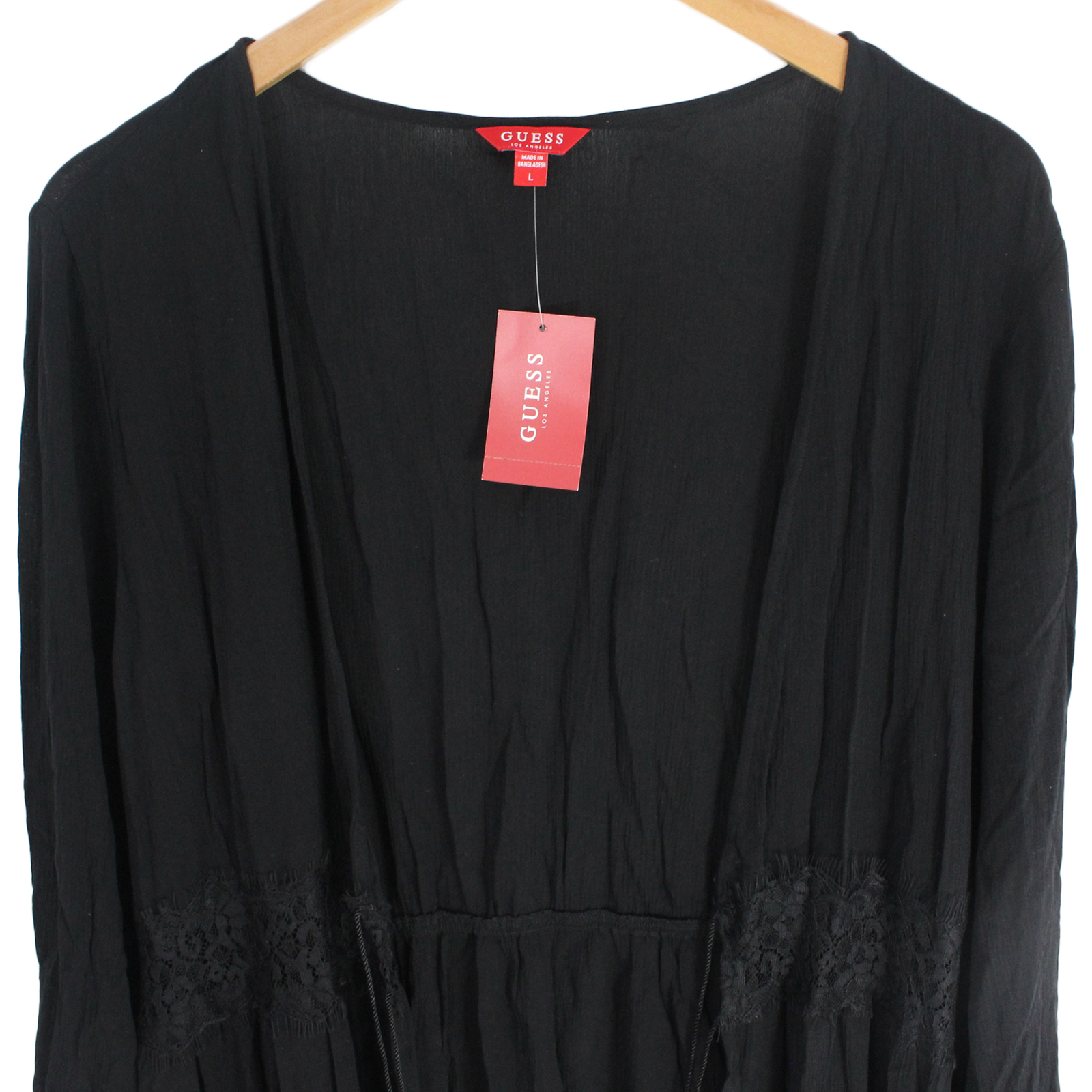 GUESS Malia Lace Rayon Open Tie Front Black Robe