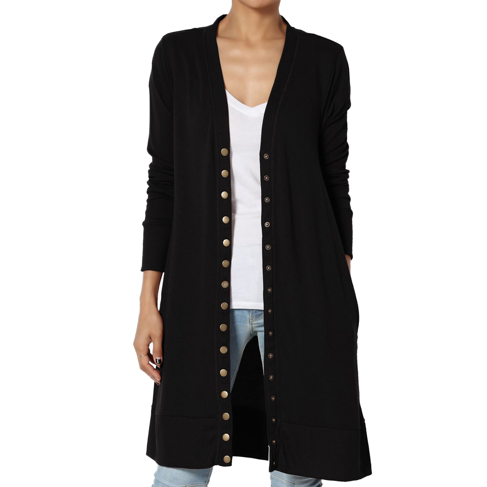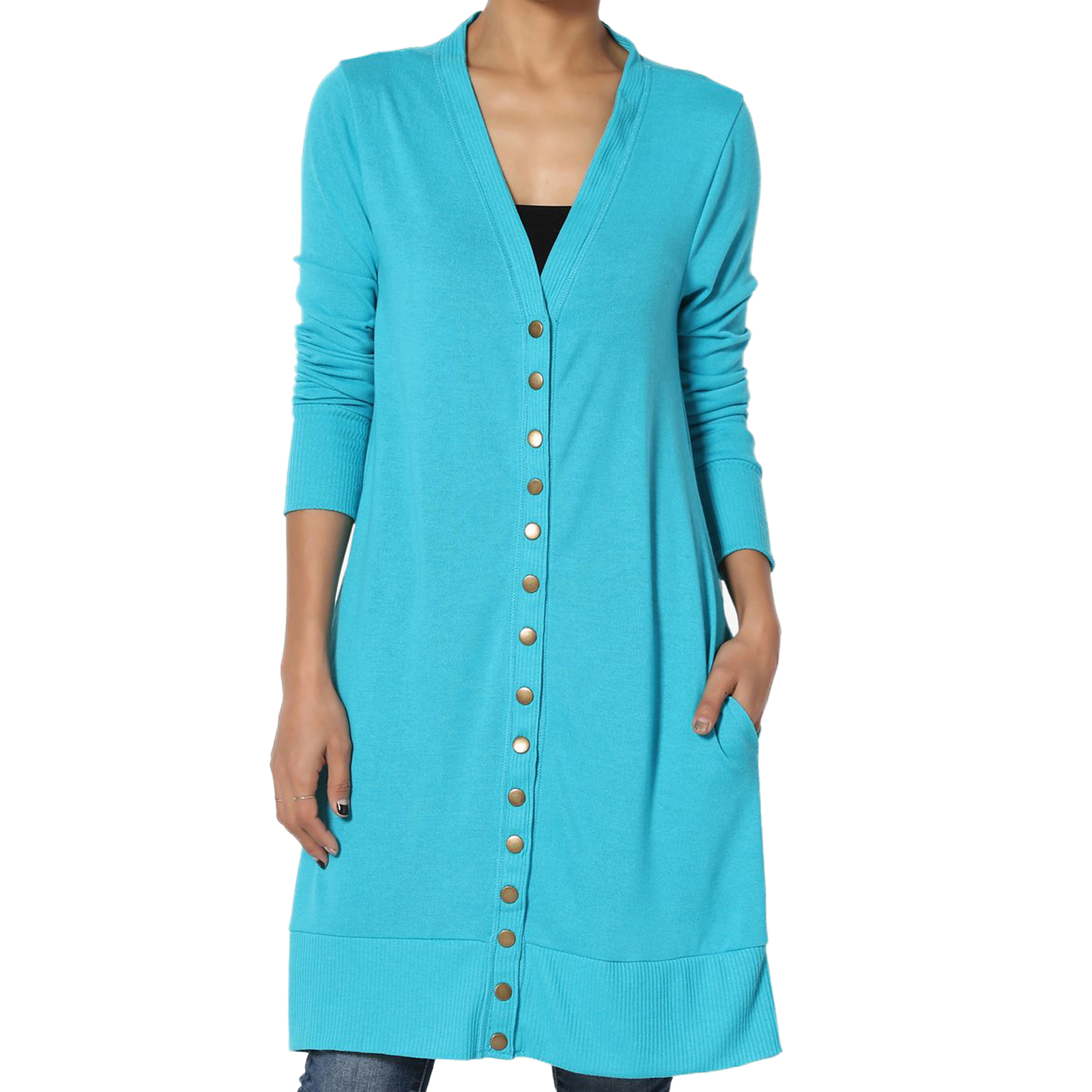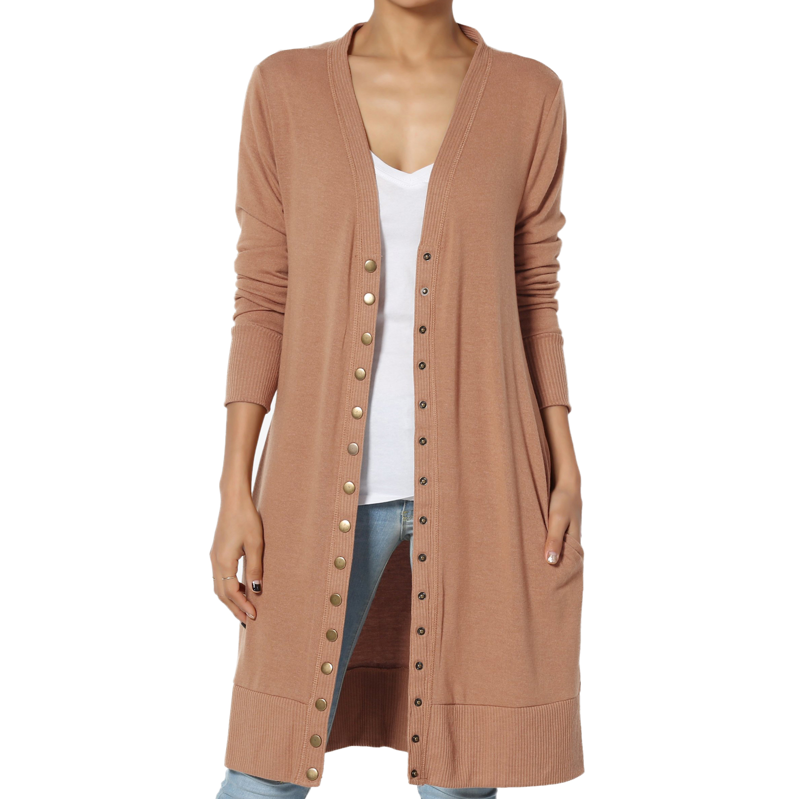 ZENANA Rayon Blend Snap Button Pocket Long Cardigan Sweater