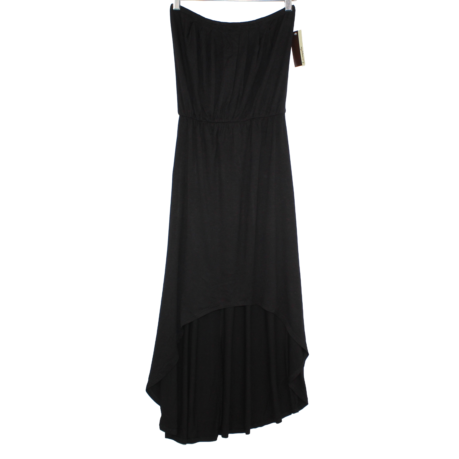 LOVEAPPELLA Rayon Blend Strapless Elastic Waist Hi-Low Black Dress
