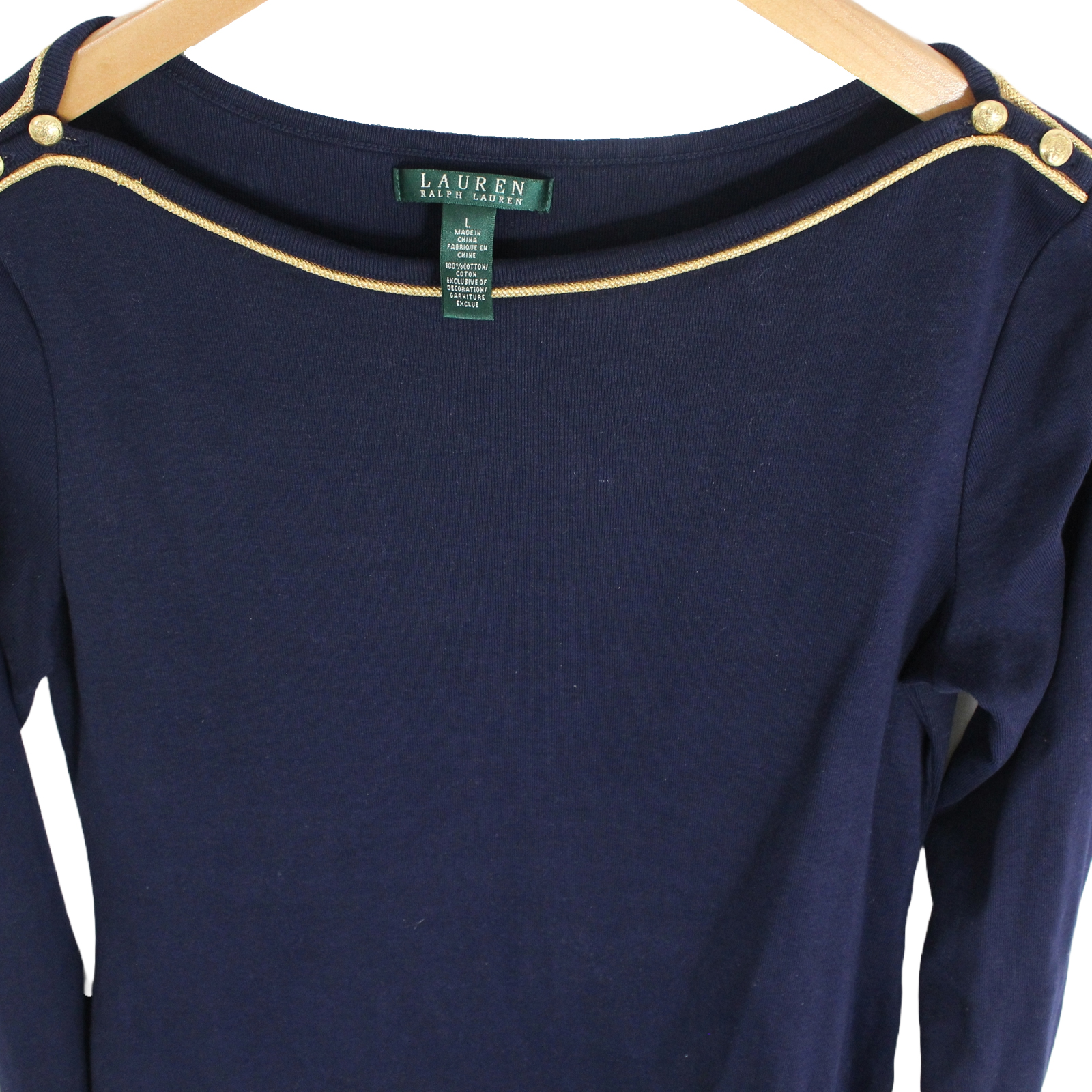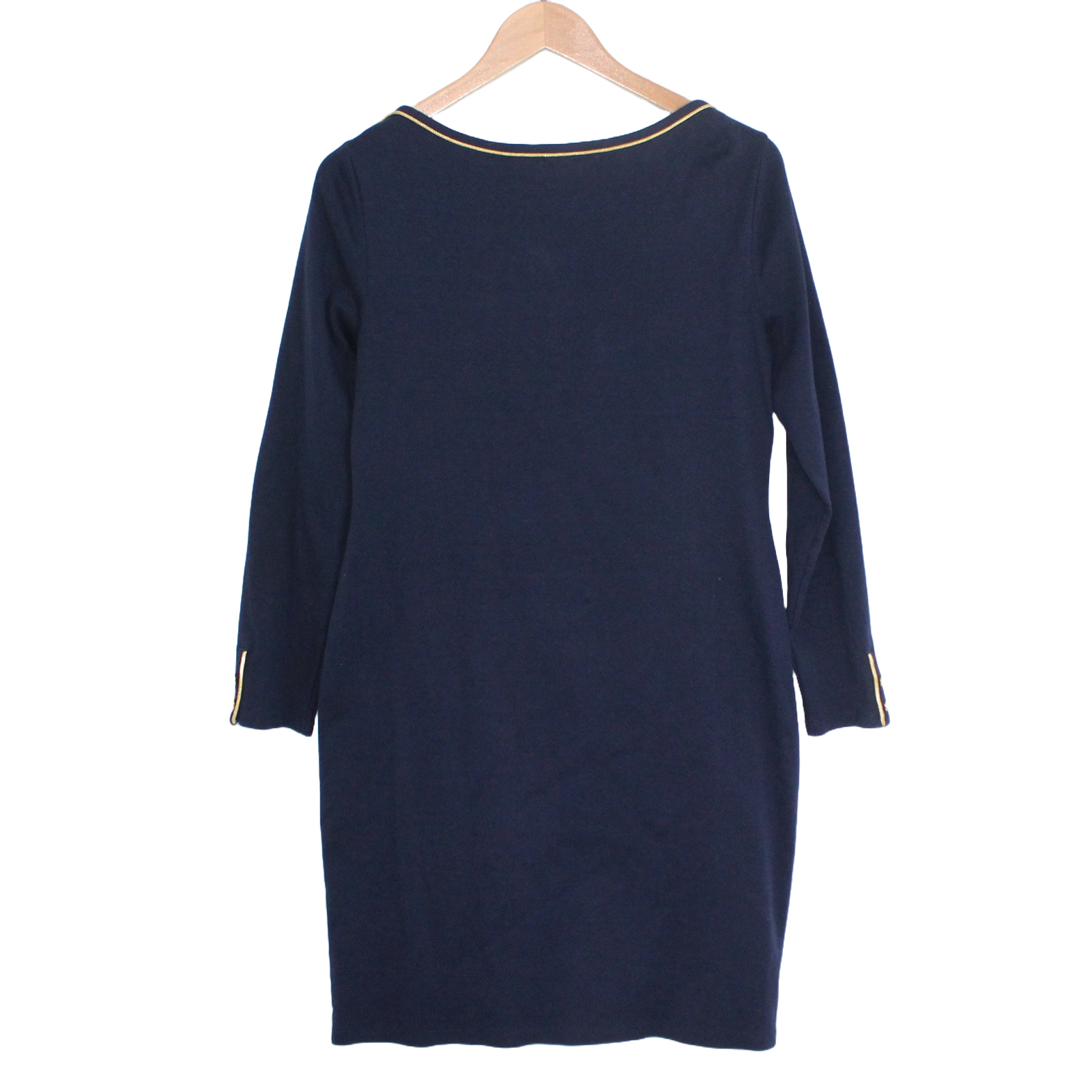 RALPH LAUREN Nautical Cotton Boat Neck Navy Blue Dress – Large