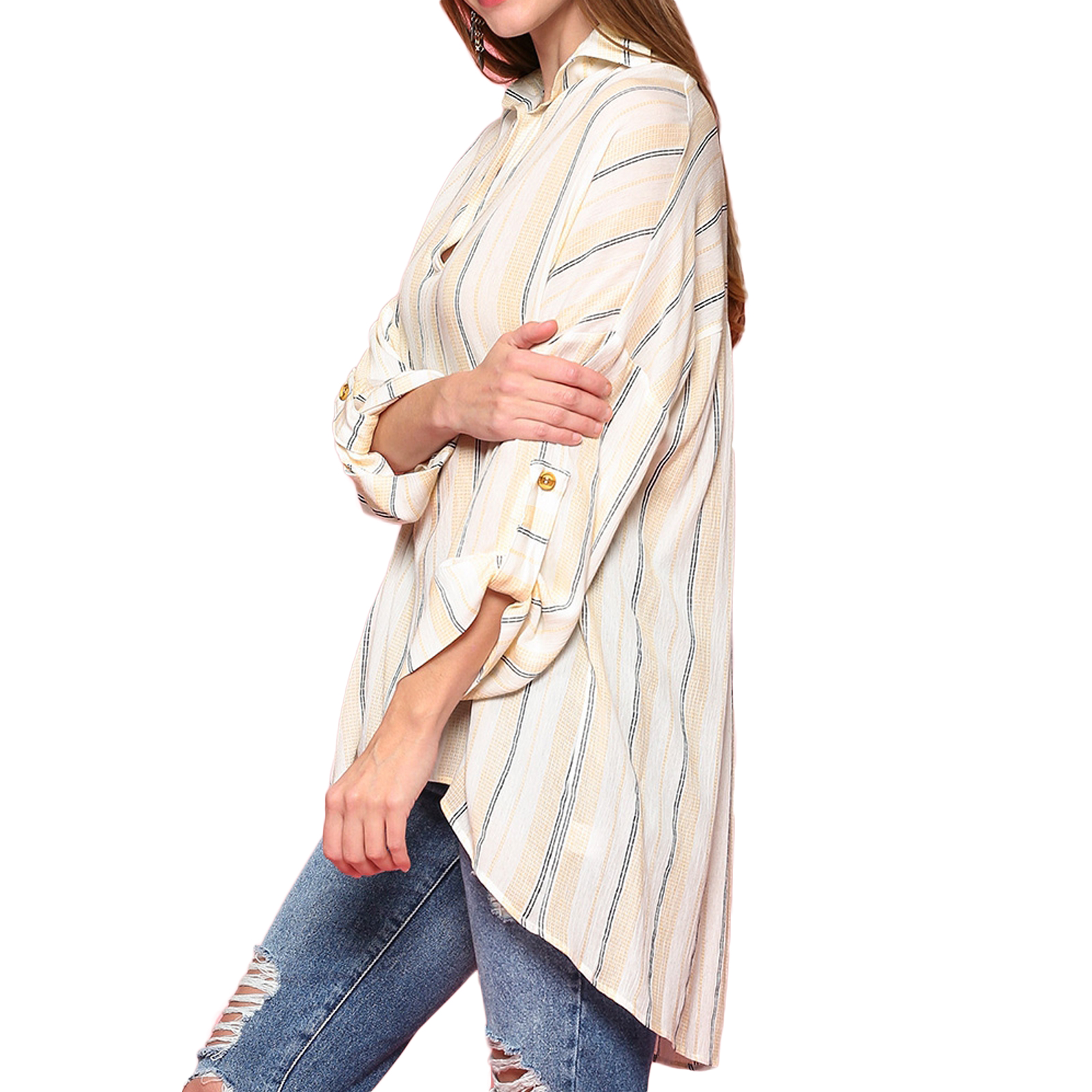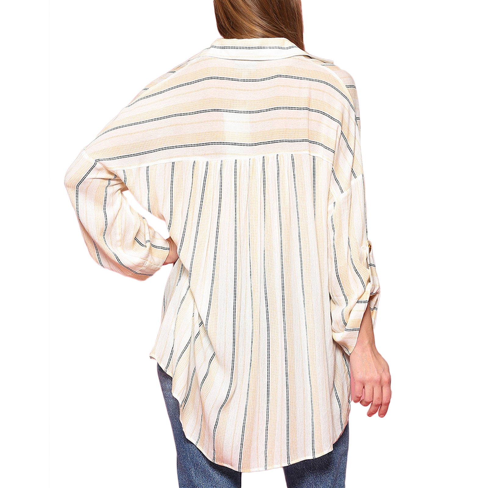 BLU HEAVEN Rayon Relax Oversize Fit Striped vNeck Long Sleeve Shirt
