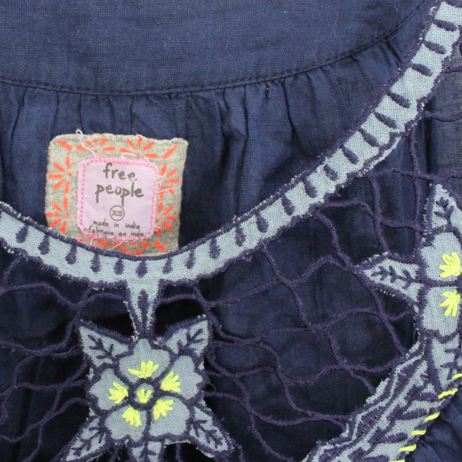 FREE PEOPLE Cotton Embroidered Drawstring Hem Blue Sleeveless Top – XS