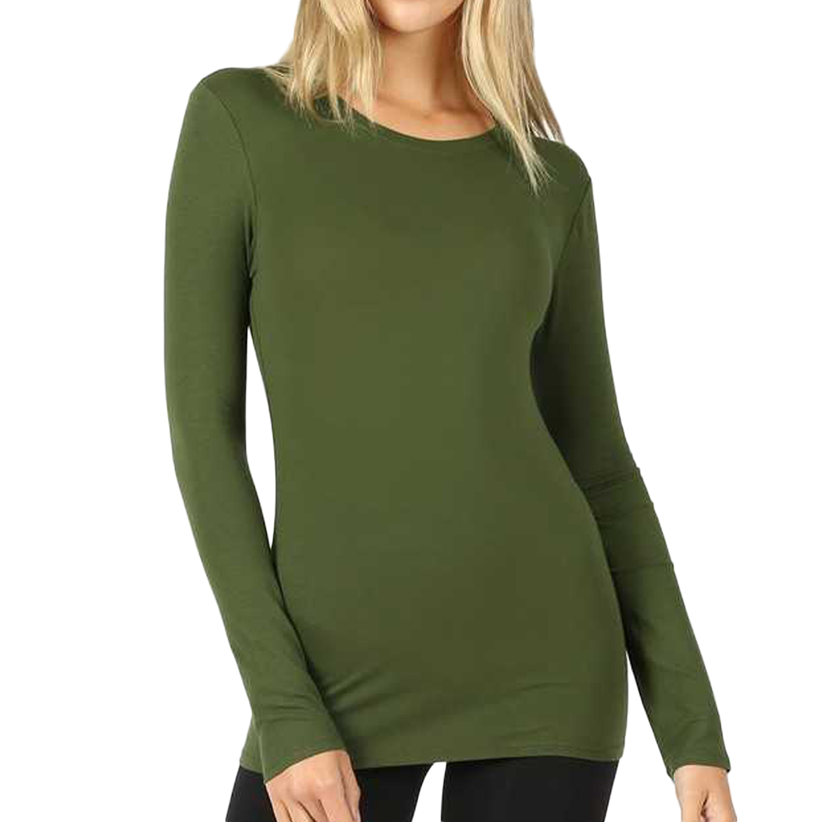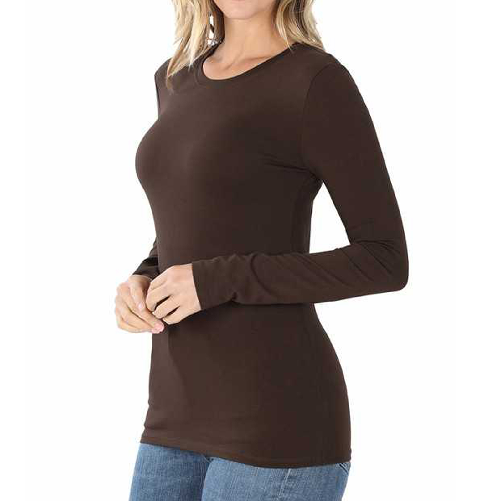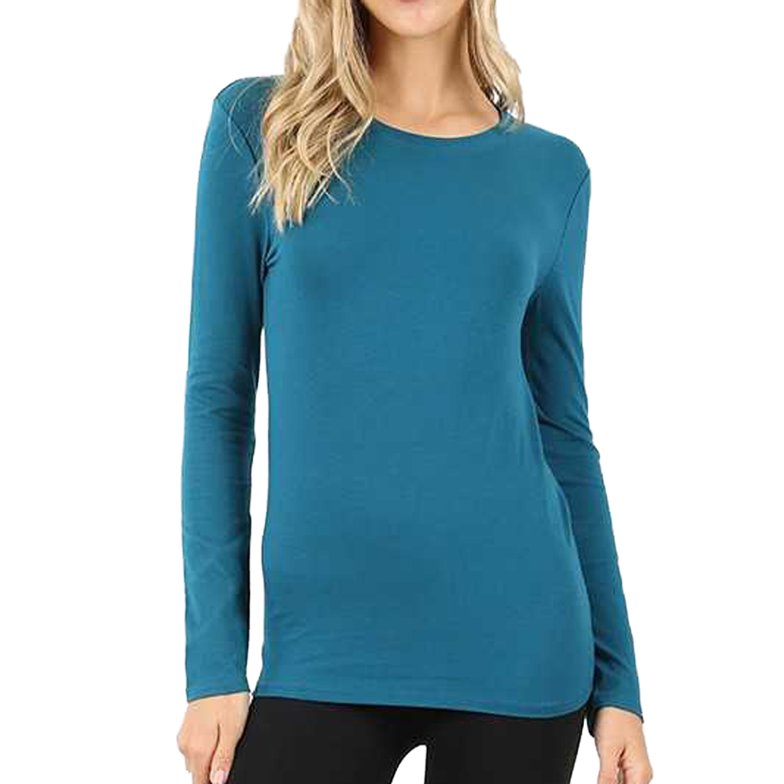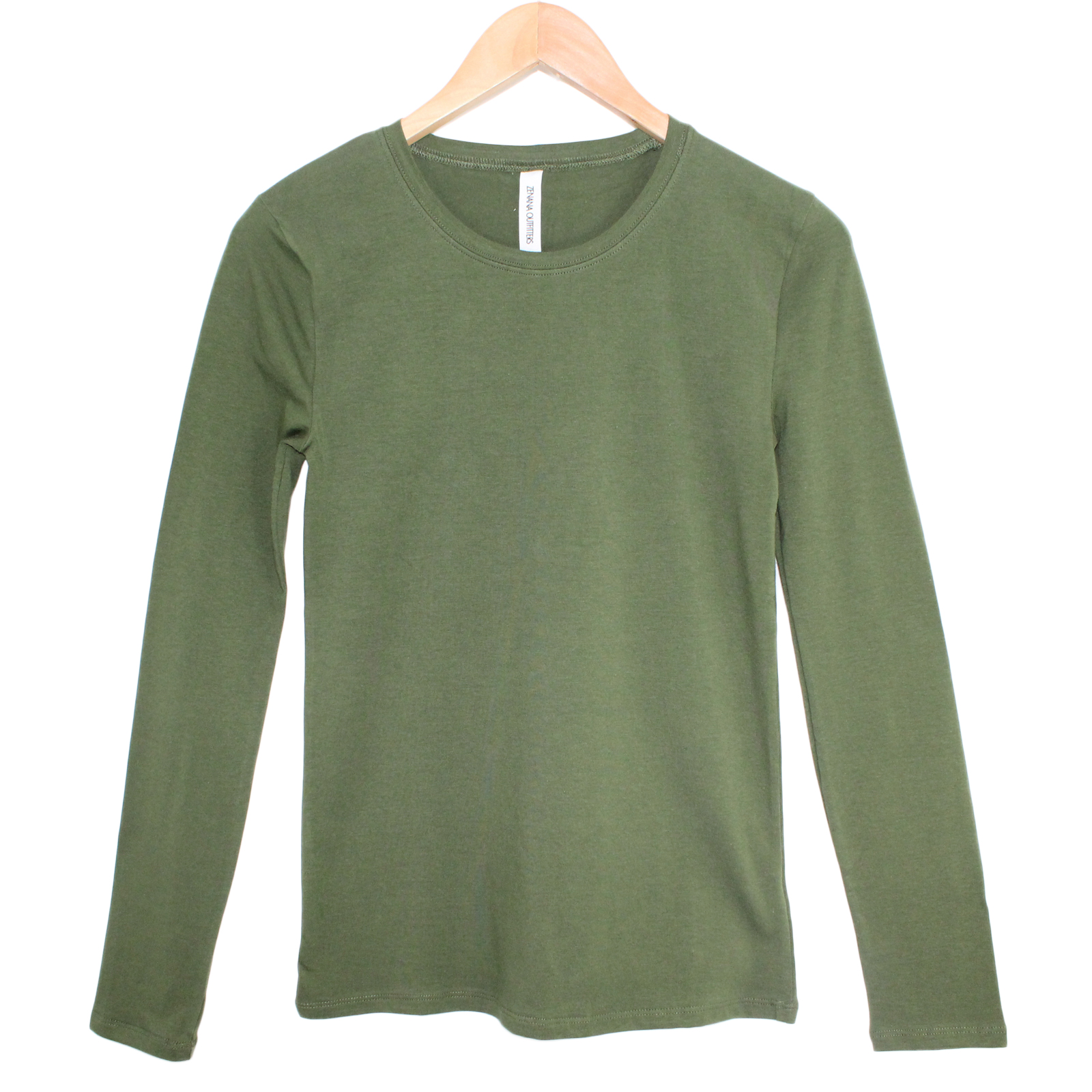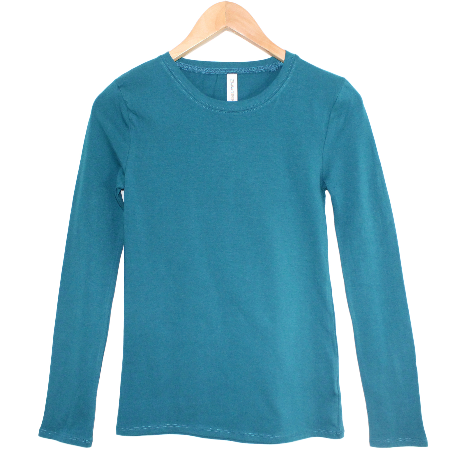Zenana Cotton Blend Long Sleeve Crewneck Top
