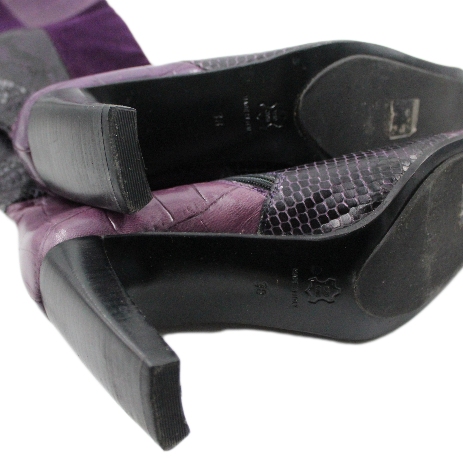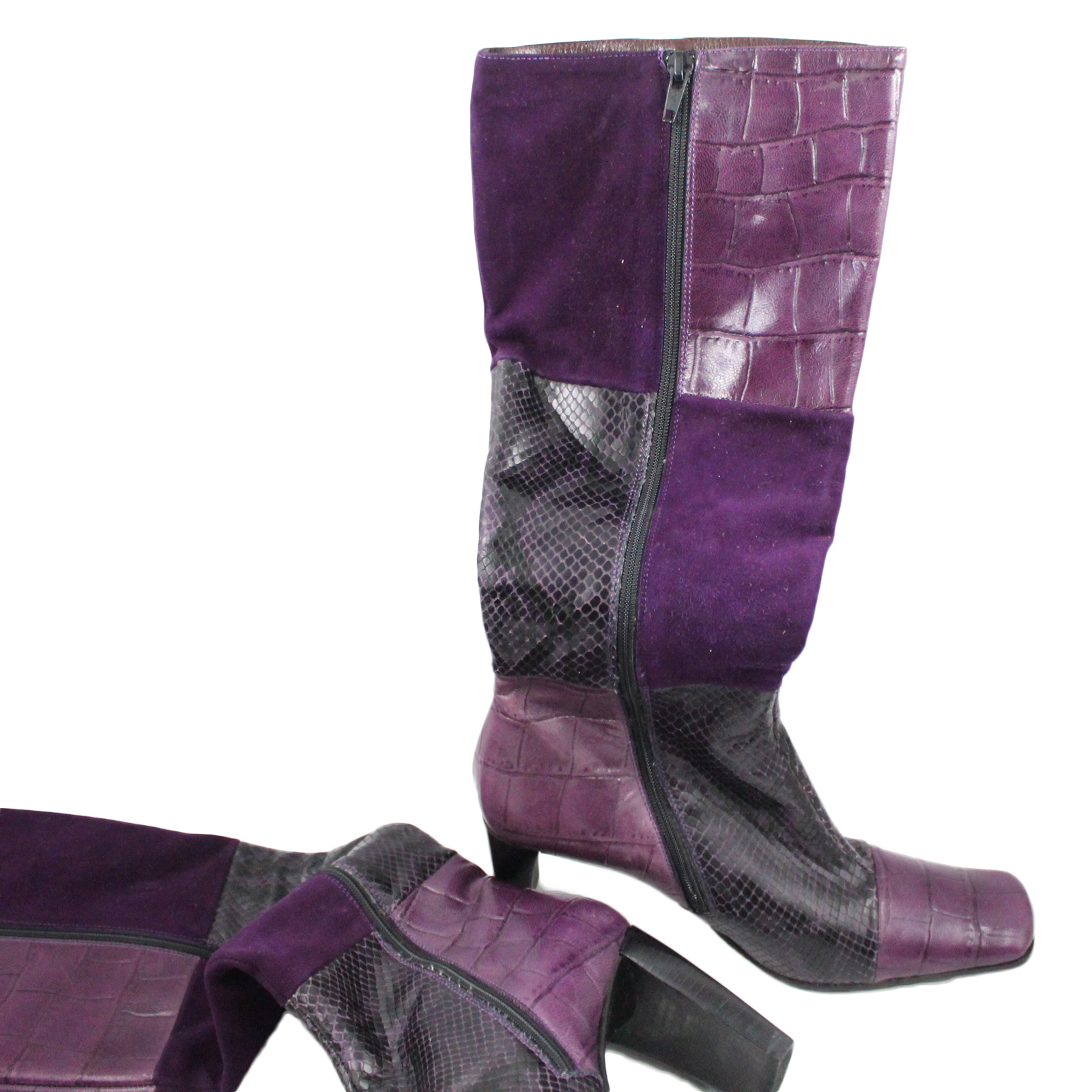 BROWNS Leather Suede Snakeskin Pattern Vintage Tall Purple Boots – Size 8
