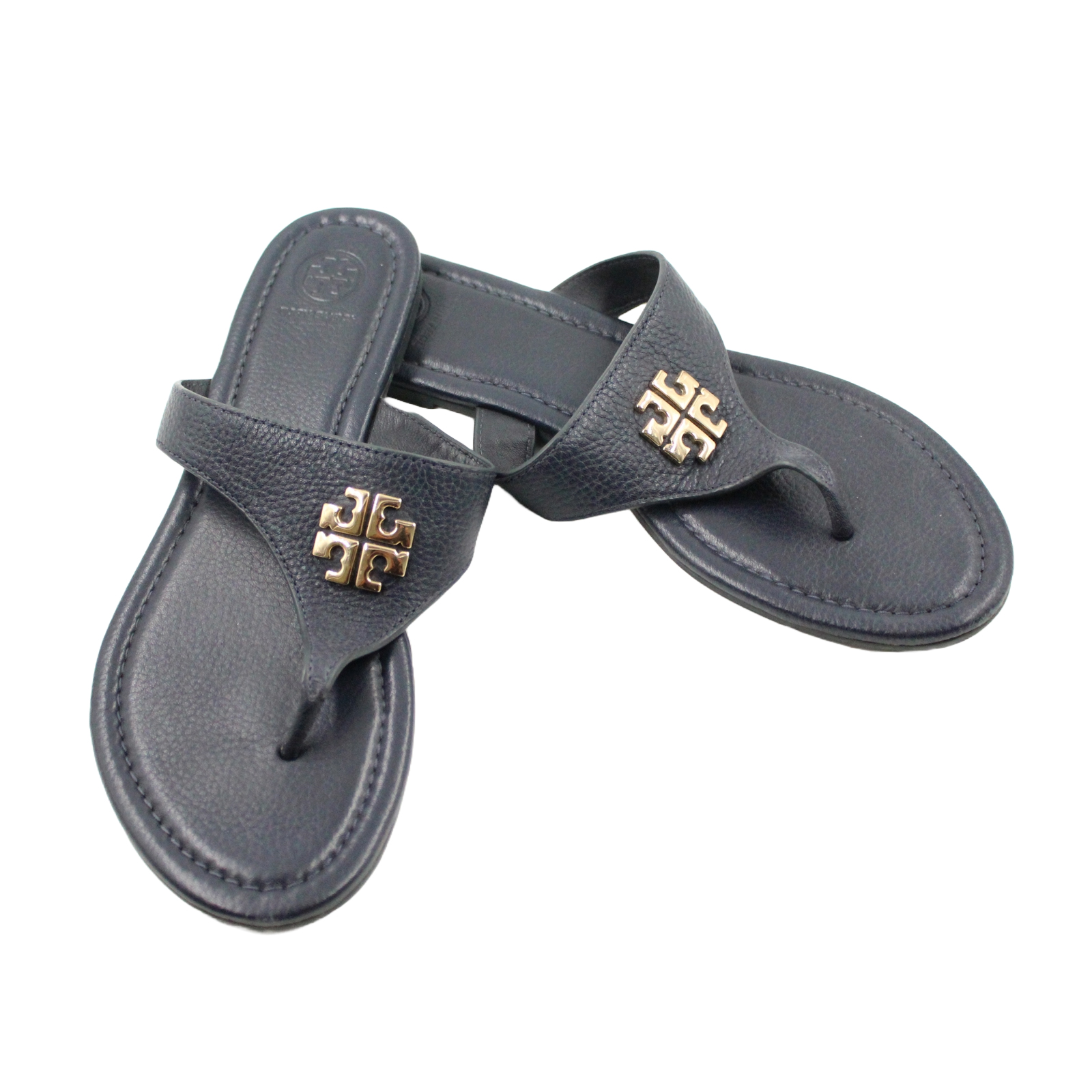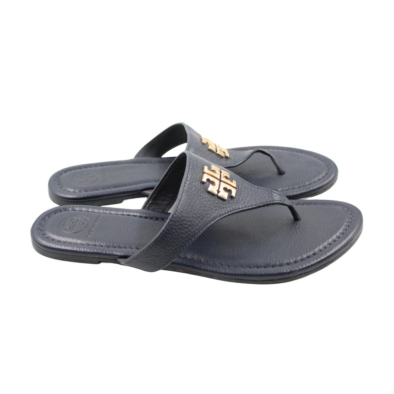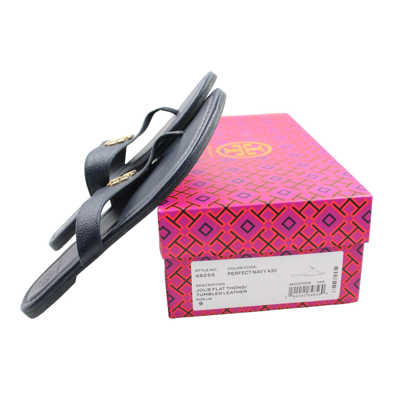 TORY BURCH Jolie Slip-on Thong Leather Navy Blue Sandals – Size 9M
