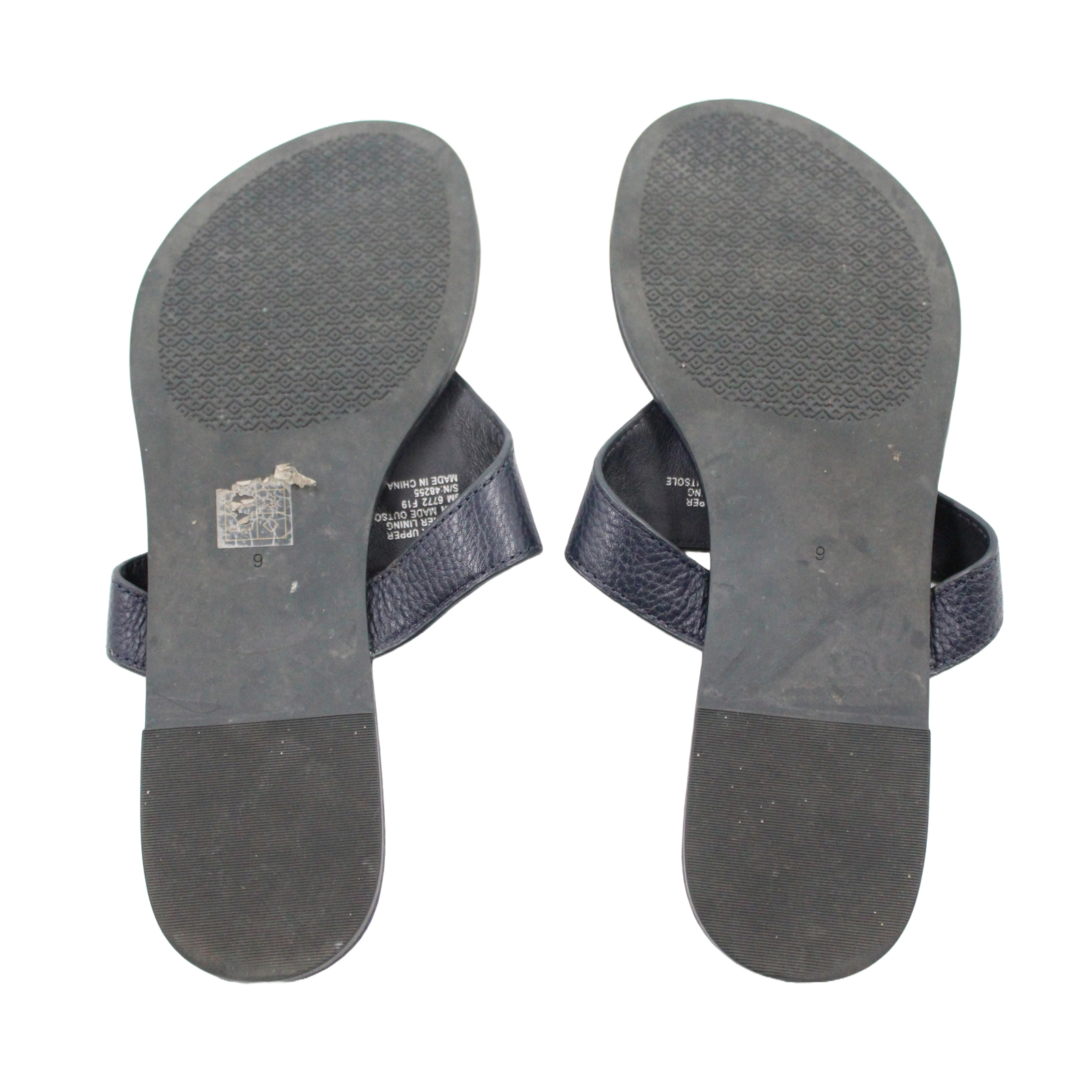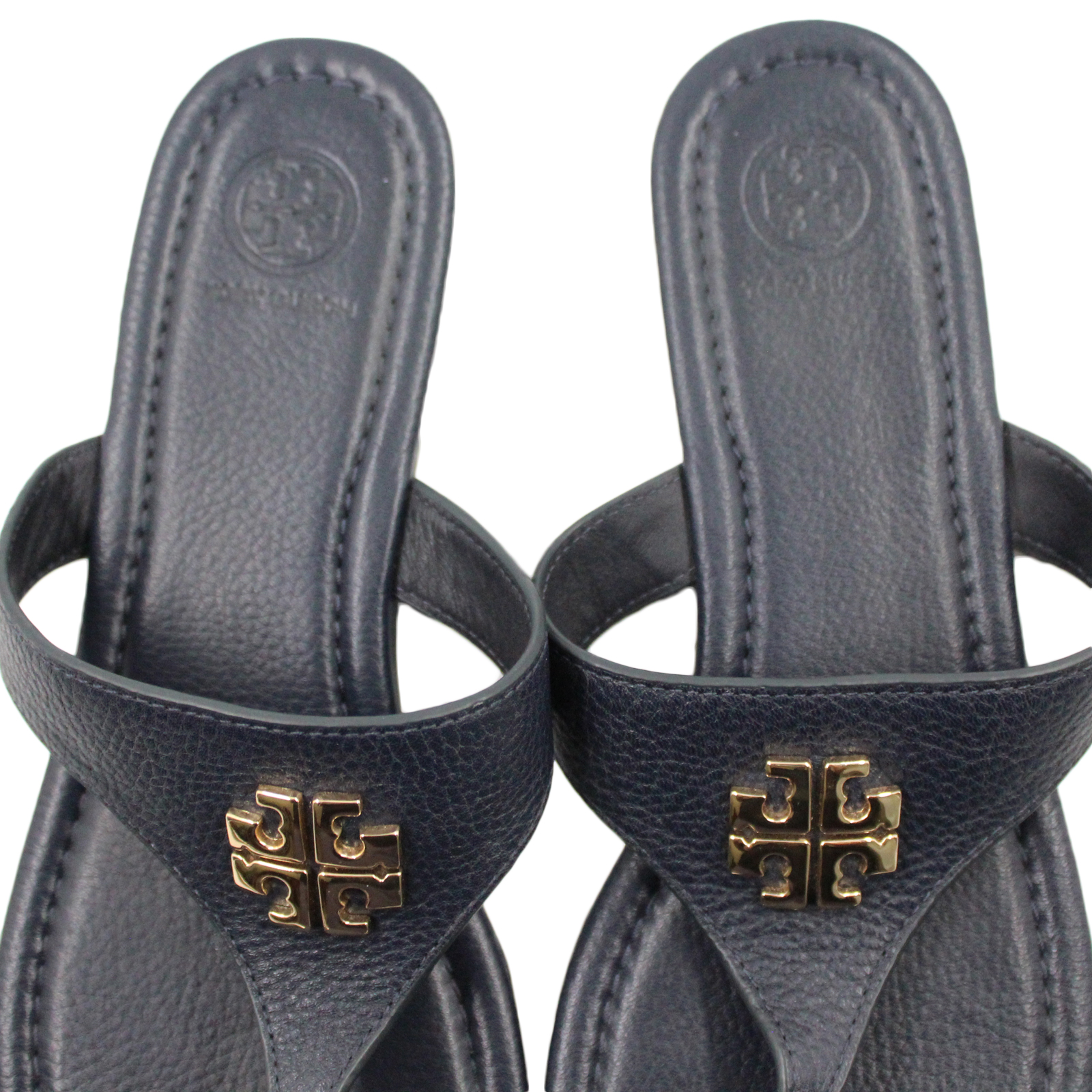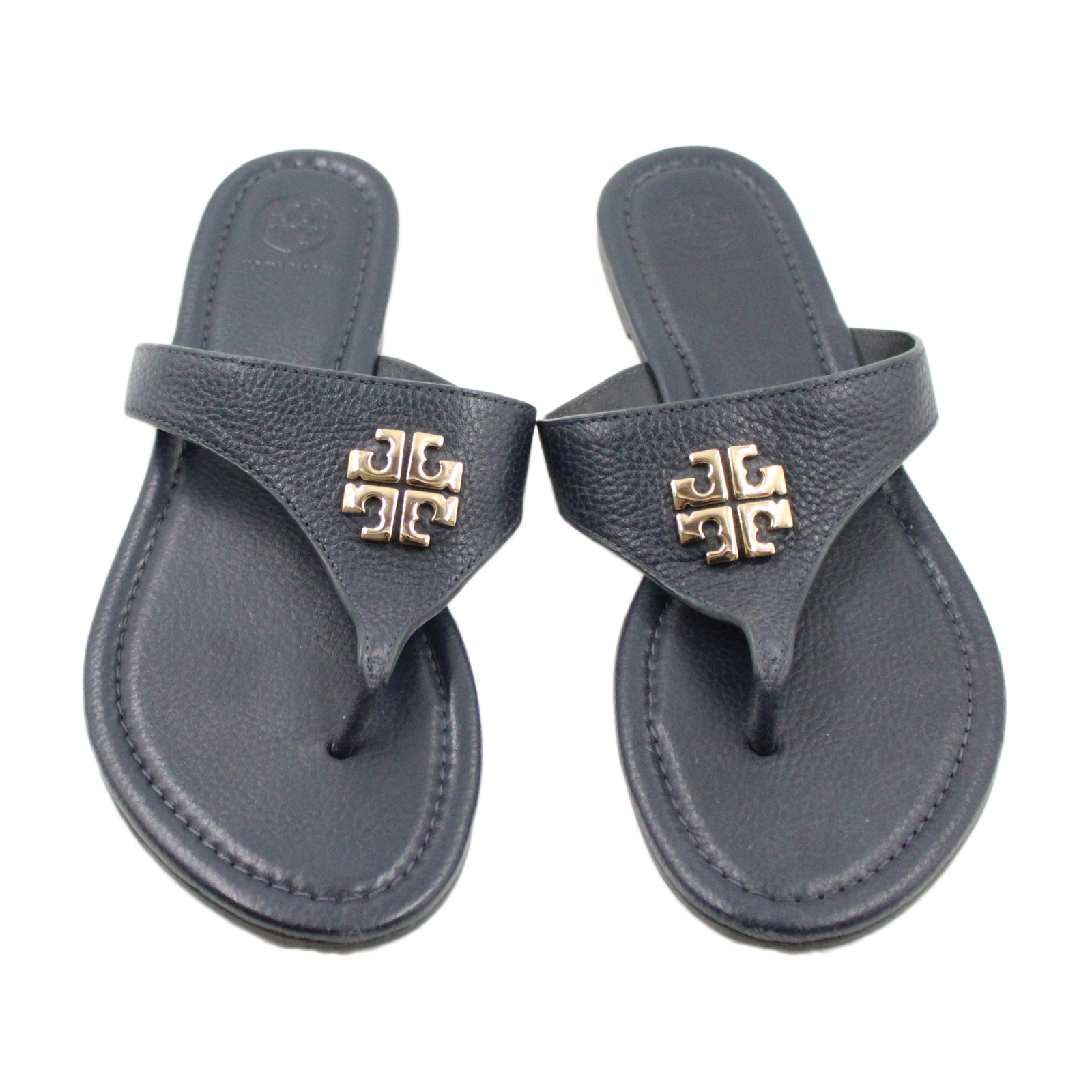 TORY BURCH Jolie Slip-on Thong Leather Navy Blue Sandals – Size 9M